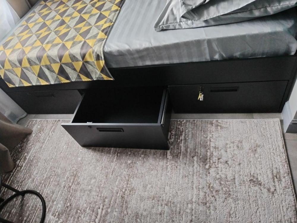 В номере кровать King size с удобным ортопедическим матрасом (в ней же мини шкаф на замках), Wi-Fi, удобные подушки, Smart TV, кондиционер, средства гигиены и полотенца.