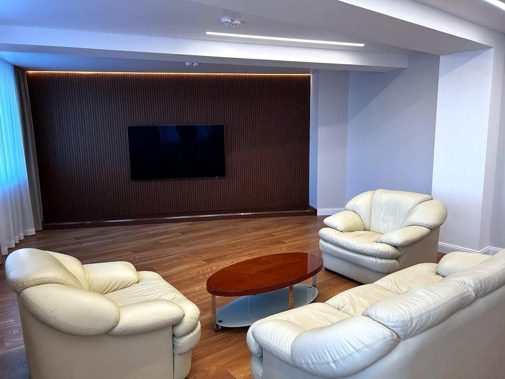 В номере: двуспальная кровать (размер 160*200); Индивидуальная система кондиционирования; Трансляция спутниковых каналов на иностранных языках; Часы-будильник; Телефон с предоставлением междугородней и международной связи; DVD; Набор посуды; Электрический чайник; Сейф; Беспроводной доступ в Интернет (Wi-Fi) бесплатно; Тапочки, халат. В ванной комнате: Средства личной гигиены; Косметическое зеркало; Фен; Напольный унитаз с гигиеническим душем; Весы напольные.