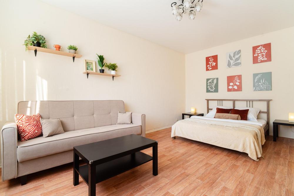Стильная квартира со свежим ремонтом. Эргономика и сервис со статусом "премиум". Наполнение квартиры, мы позаботились обо всём: В комнате: ✅удобная кровать с ортопедическим матрасом 160*200; ✅ Шторы блэкаут, ✅диван-кровать; ✅ Письменный стол и вместительный шкаф; ✅СМАРТ ТВ +...