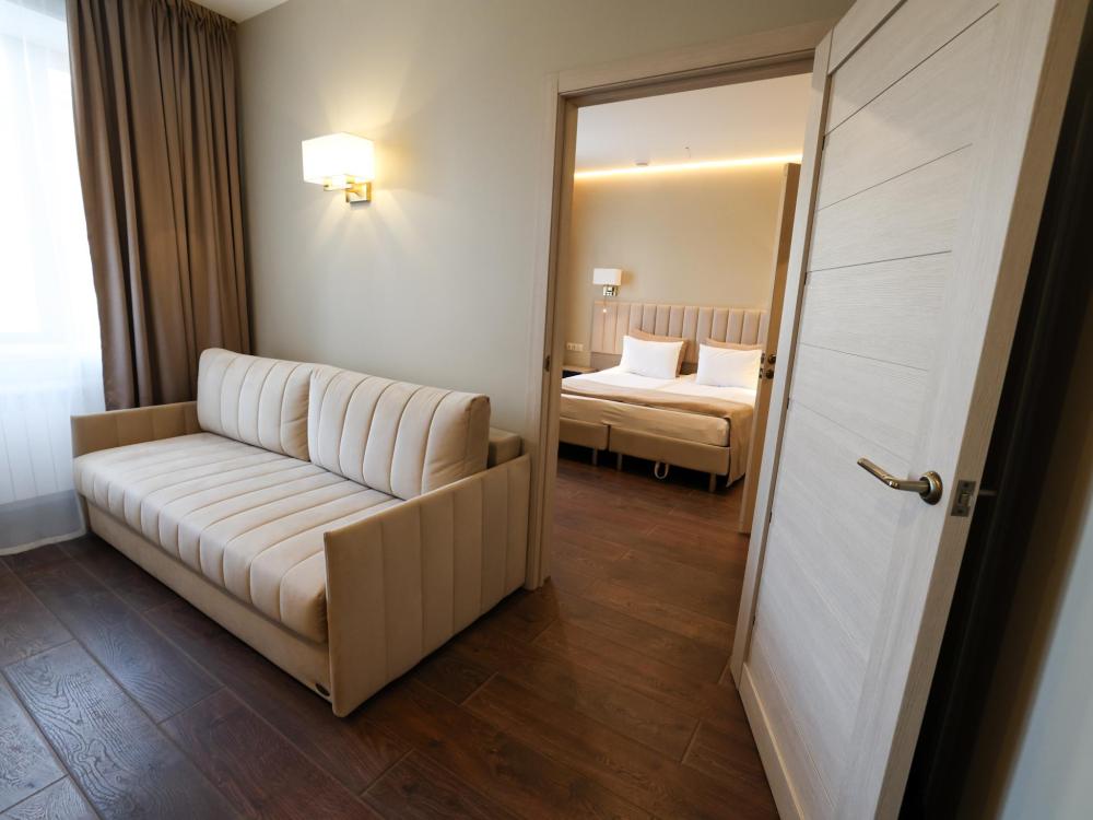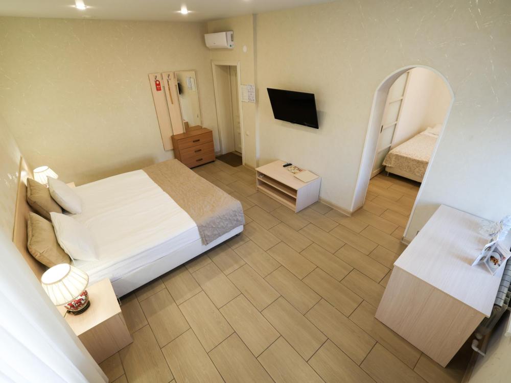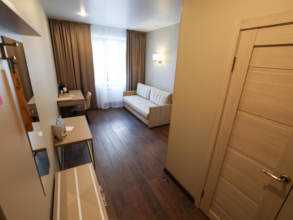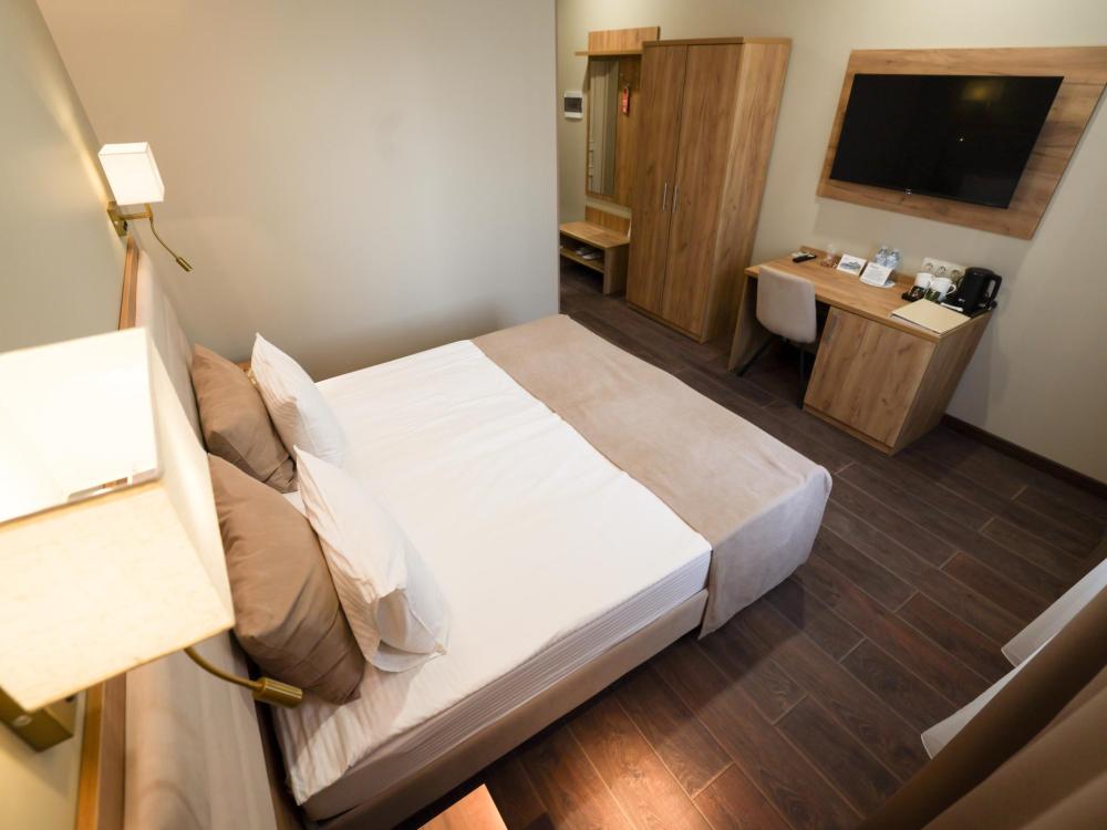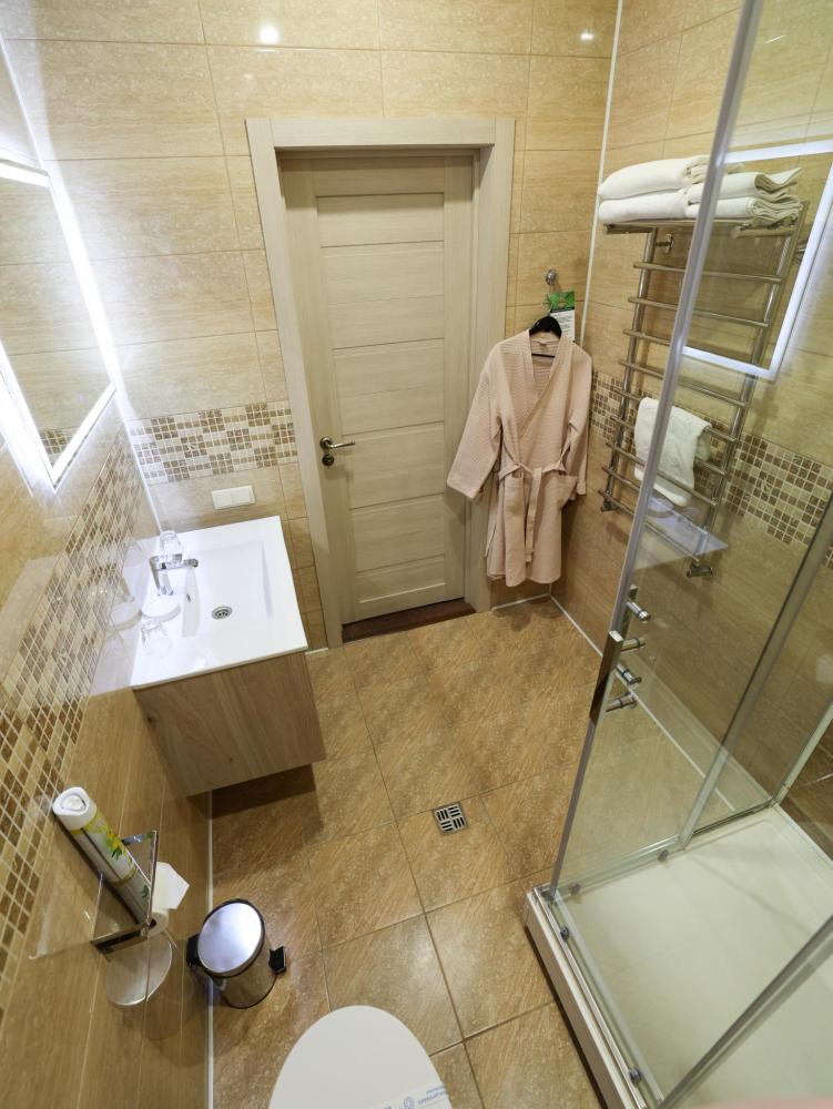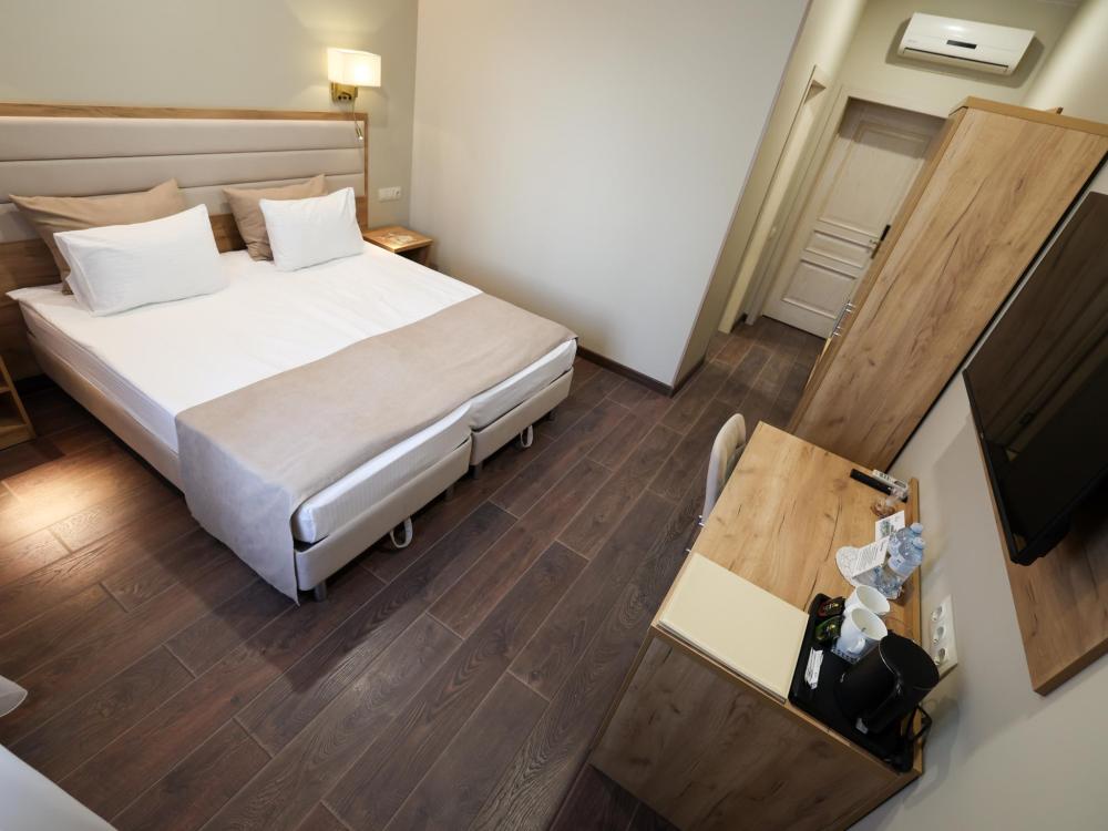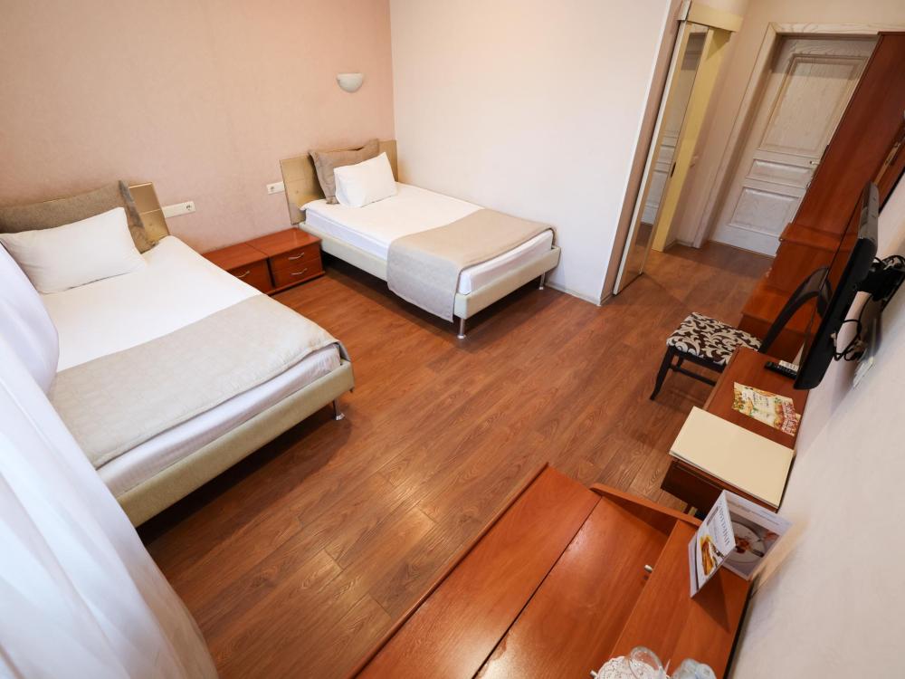 Две раздельные кровати, рабочая зона, холодильник, кондиционер, ЖК-телевизор со спутниковыми каналами, беспроводной интернет, тапочки, ванная комната с душевой кабиной (оборудованная всем необходимым), бутилированная вода.