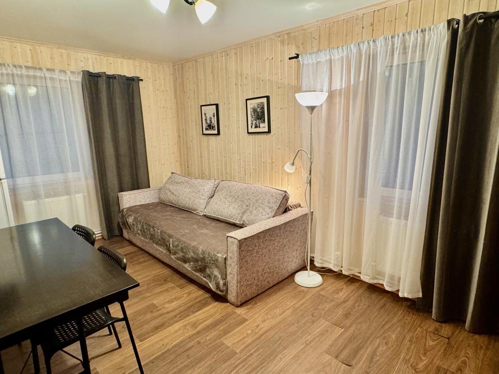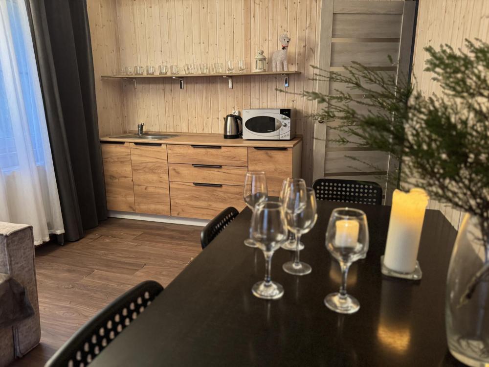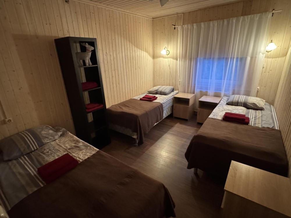 Одноэтажный дом с просторной гостиной. В доме 3 спальни, 1 с/у, сауна, мини-кухня, микроволновка, чайник, телевизор, холодильник, обогреватели. Высокоскоростной интернет - Wi-fi Газовых и электрических плит - нет.