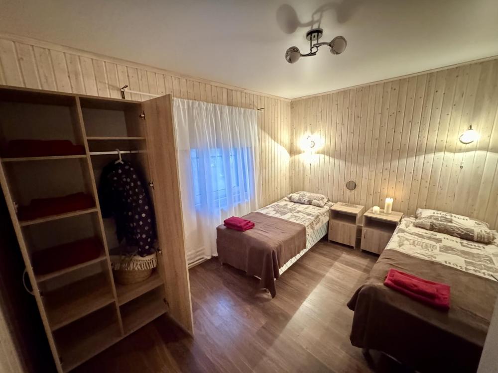 Дом с 2 комнатами на 4 человека, чайник, телевизор, обогреватель С/у в другом здании - 3 минуты пешком Газовых и электрических плит - нет.