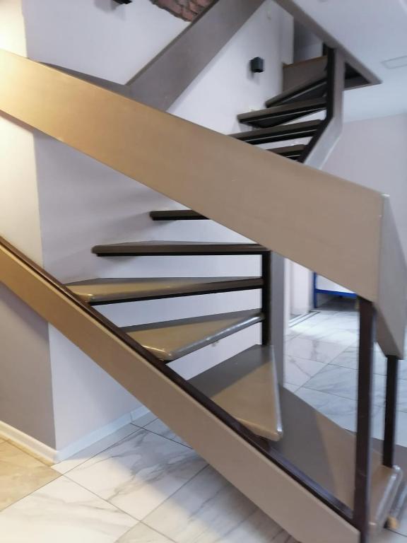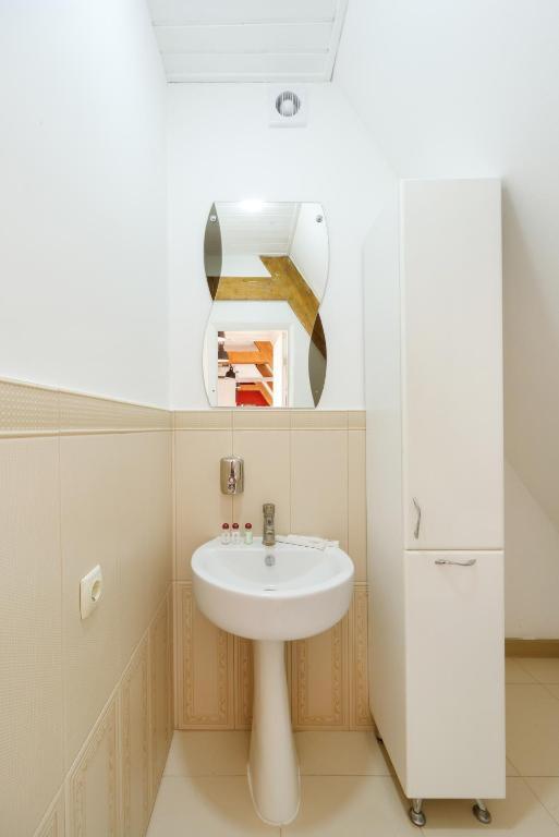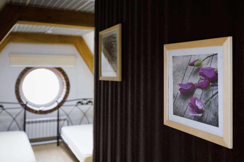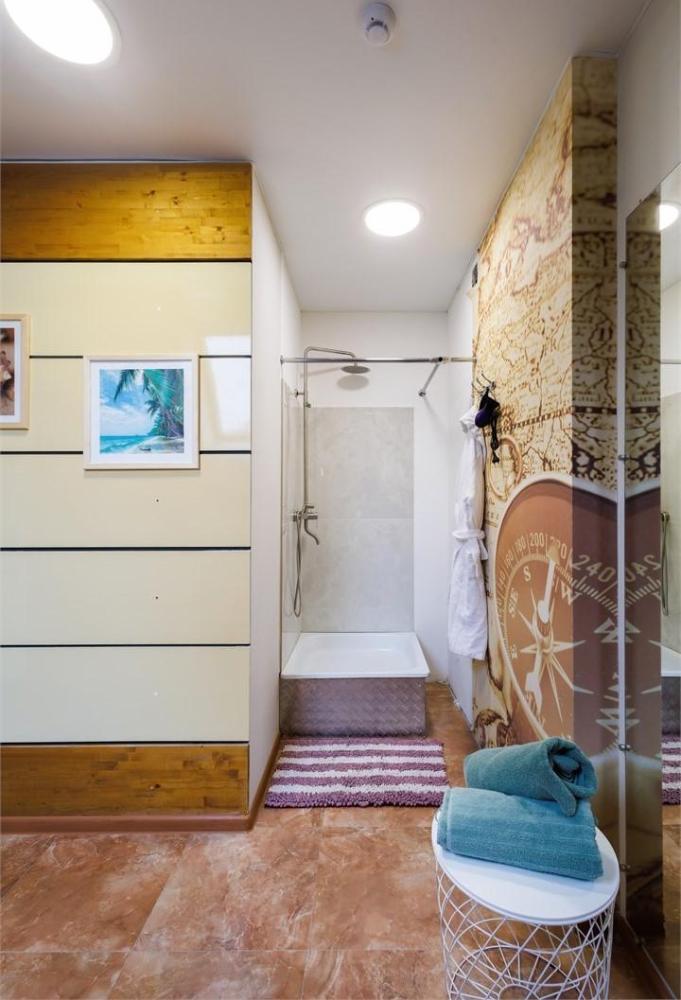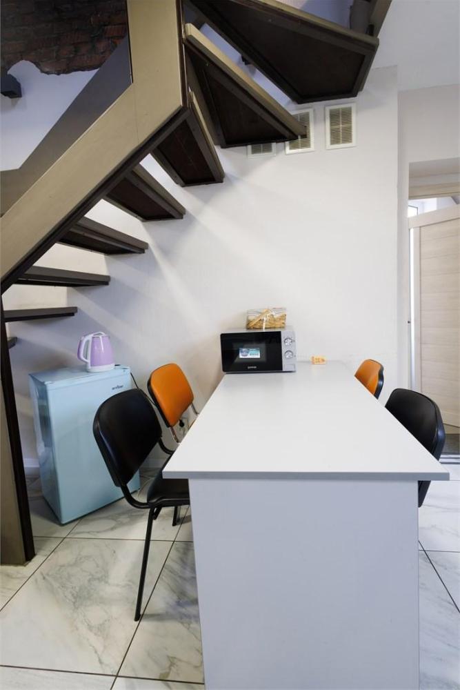 Двухуровневый номер по типу таунхаус: верхняя часть номера представляет из себя отдельный номер с 2мя двуспальными и двумя односпальными кроватями, витой лестницей соединяется со второй частью просторного номера, в котором есть мини кухня, душ, санузел и 4 двухъярусные кровати.