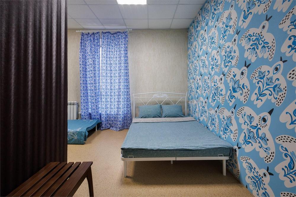 Кровать в звукоизолированном общем номере со своей душевой и санузлом