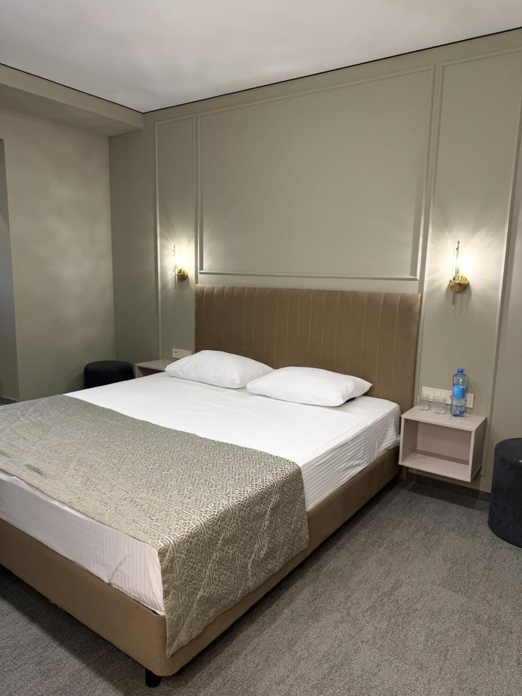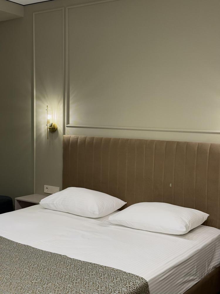 Уютный номер комфорт с двуспальной кроватью 12 кв.м. Для гостей есть все необходимое для комфортного отдыха: телевизор,холодильник,кондиционер, удобства,предоставляются туалетно-комсметические принадлежности,полотенце.