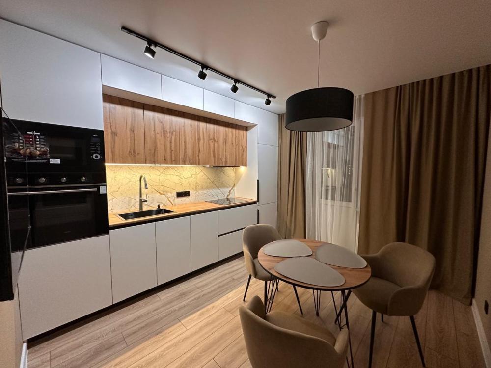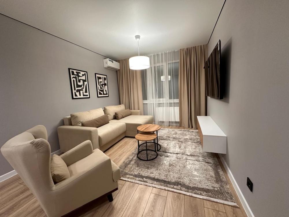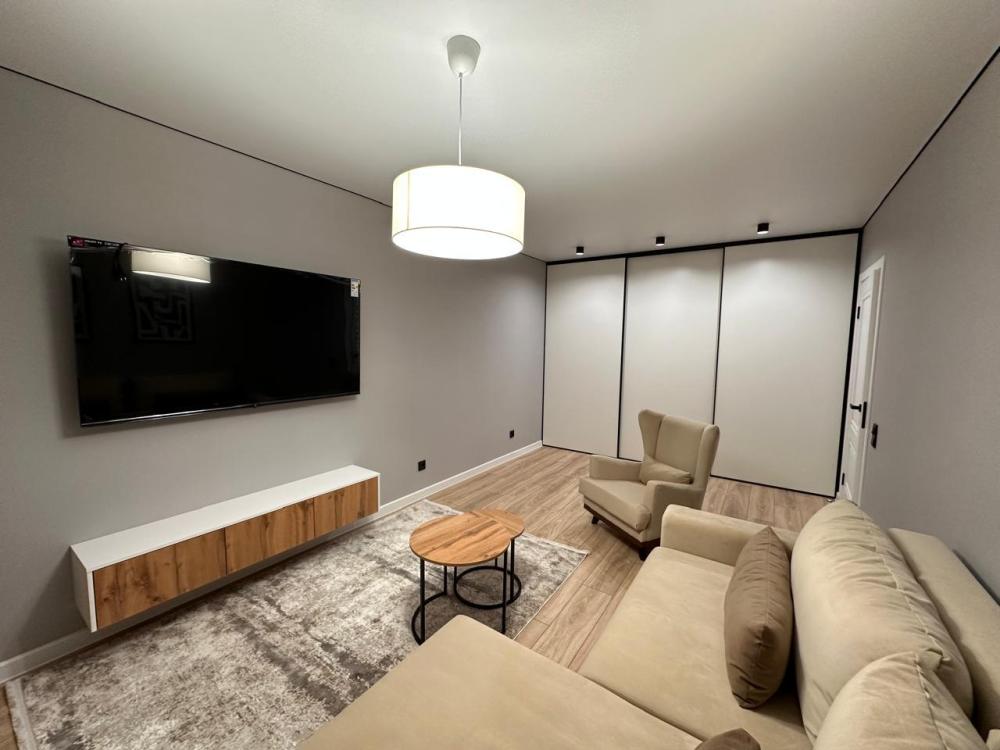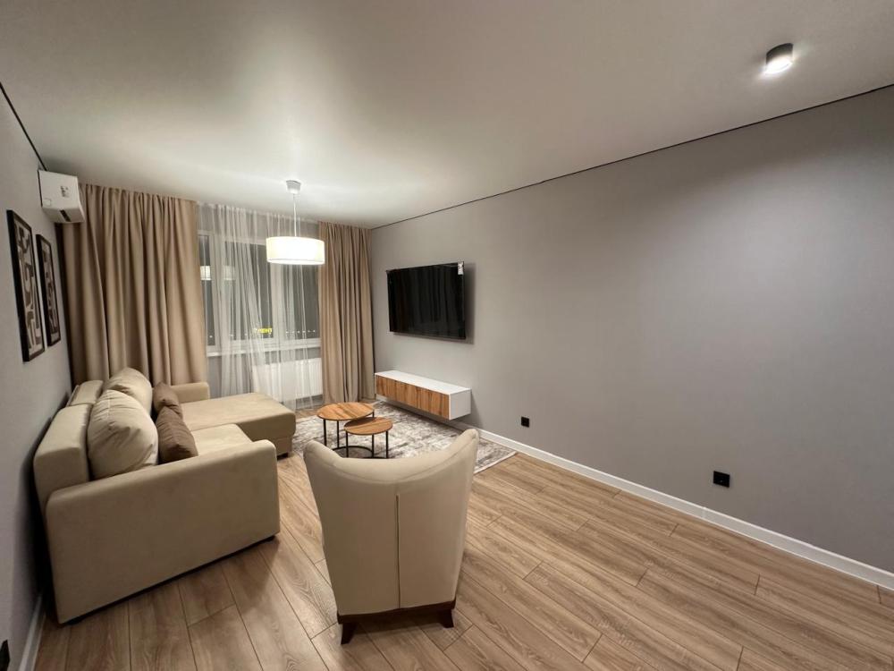 В КВАРТИРЕ ИМЕЮТСЯ: Кондиционер; ЖК-телевизор с подключенным кабельным ТВ; Комплект хлопкового постельного белья и полотенца; Бытовая техника (стиральная машинка, СВЧ-печь, холодильник, плита, чайник, утюг, фен); Средства для личной гигиены (шампунь, гель для душа, мыло); Посуда для приготовления пищи; Гладильная доска и сушилка. Цена зависит от количества проживающих, срока проживания, а также дня недели бронирования.
