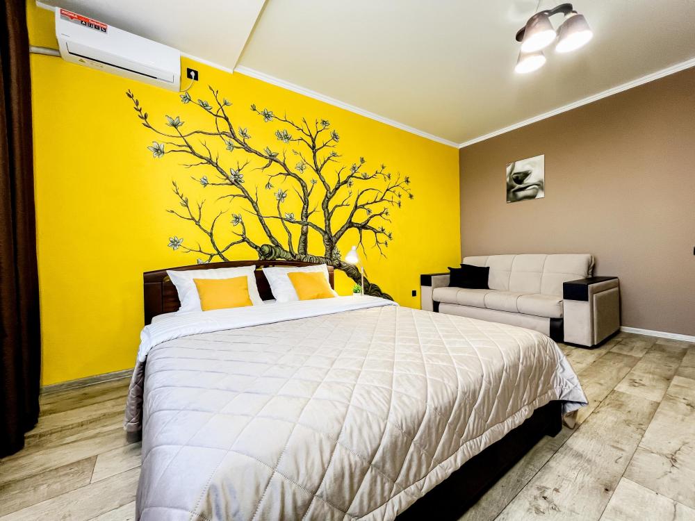Спальные места - Двуспальная кровать + 2 двуспальных дивана - размещение до 4 гостей. - Постельное белье: • Для 4-х гостей: 2 комплекта белья предоставляются бесплатно. • Для 2-х гостей: 1 комплект белья входит в стоимость, второй комплект (при использовании дополнительного спального места) — 300 руб. Техника и удобства - Полноценная кухня с полным набором посуды - Холодильник, микроволновка, стиральная машина - Телевизор, кондиционер, фен - Утюг с гладильной доской - Базовые гигиенические принадлежности Уборка - Уборка после каждого гостя - Смена всего постельного белья и полотенец