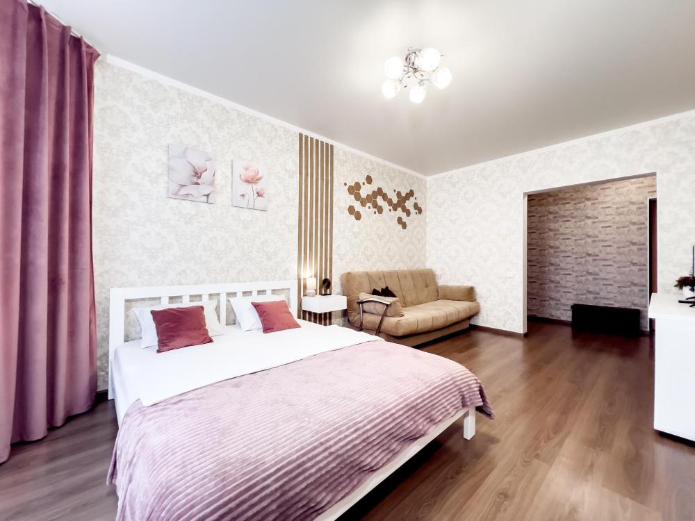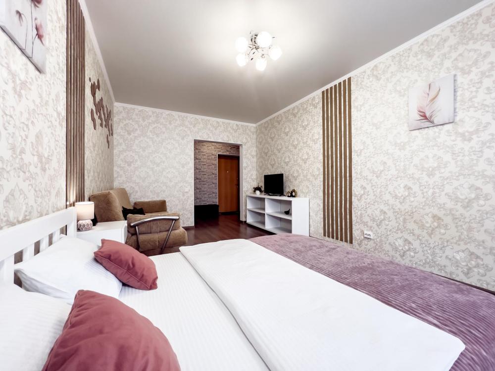 О квартире: Спальные места - Двуспальная кровать + раскладной диван - размещение до 4 гостей -Постельное белье: • Для 4-х гостей: 2 комплекта белья предоставляются бесплатно. • Для 2-х гостей: 1 комплект белья входит в стоимость, второй комплект (при использовании дивана) — 300 руб. Техника и удобства - Полноценная кухня с полным набором посуды - Холодильник, микроволновка, стиральная машина - Телевизор, кондиционер, фен - Утюг с гладильной доской - Базовые гигиенические принадлежности Уборка - Уборка после каждого гостя - Смена всего постельного белья и полотенец