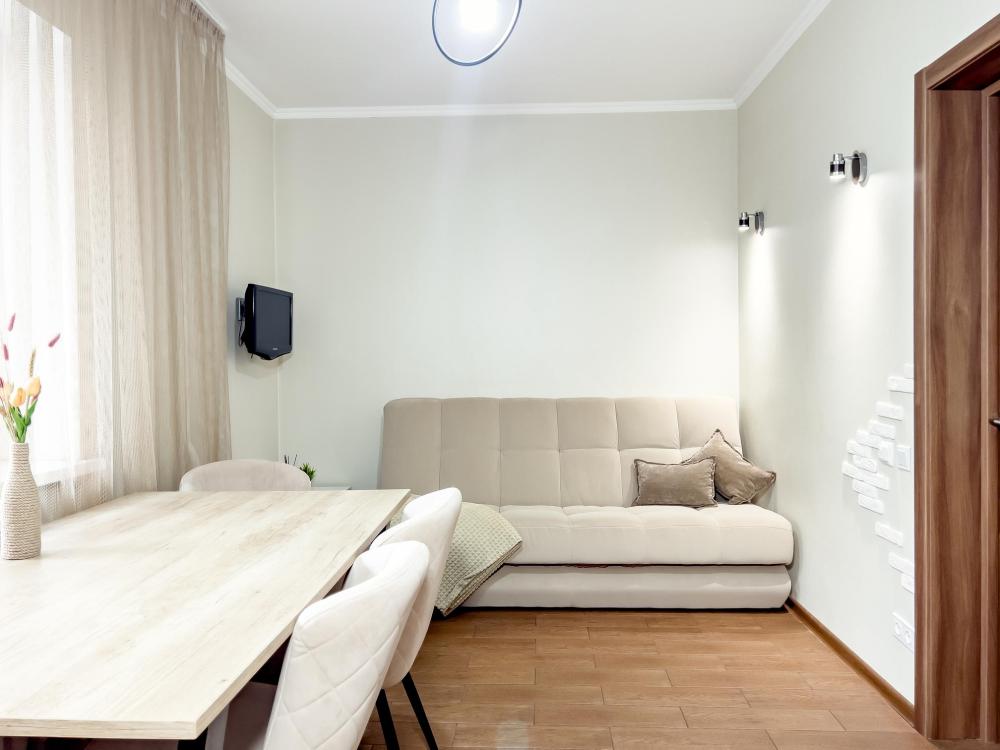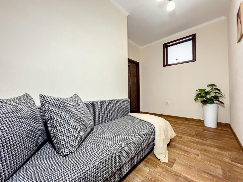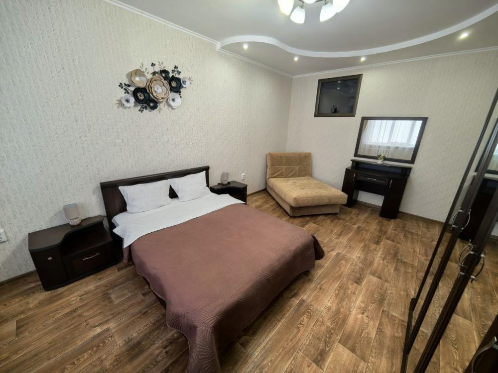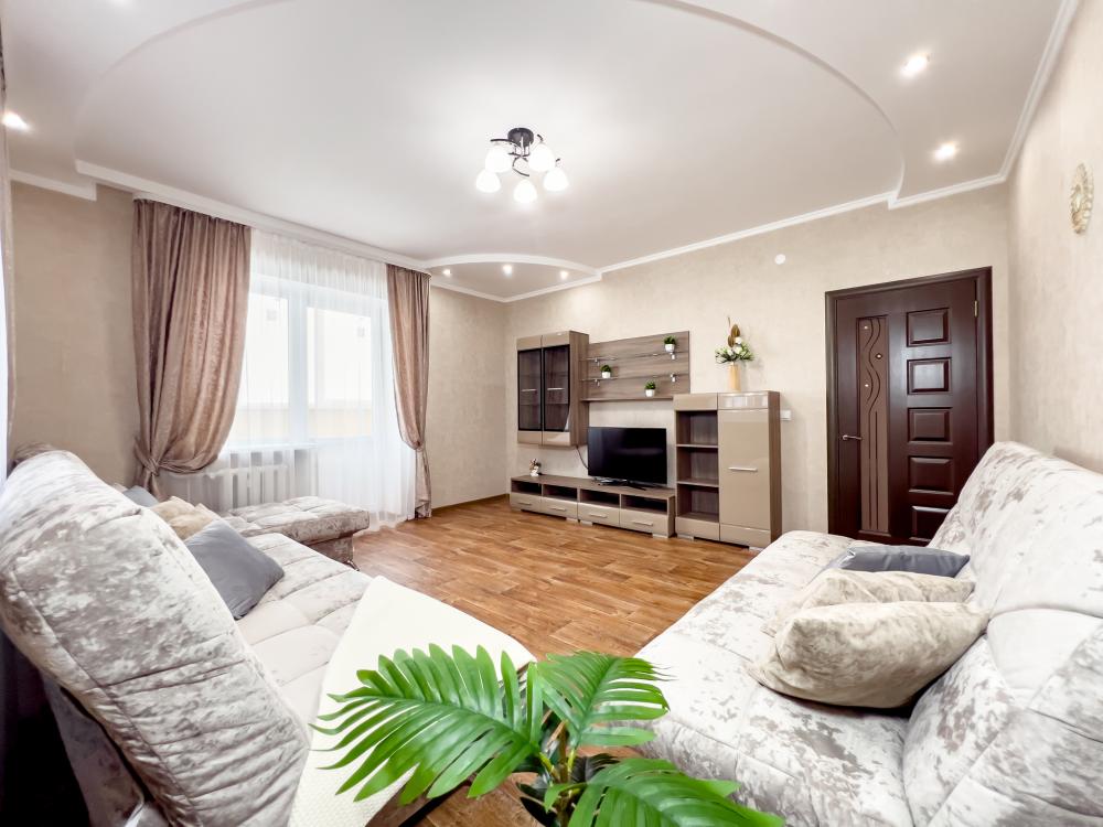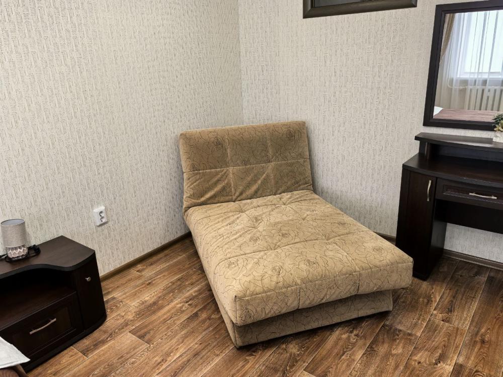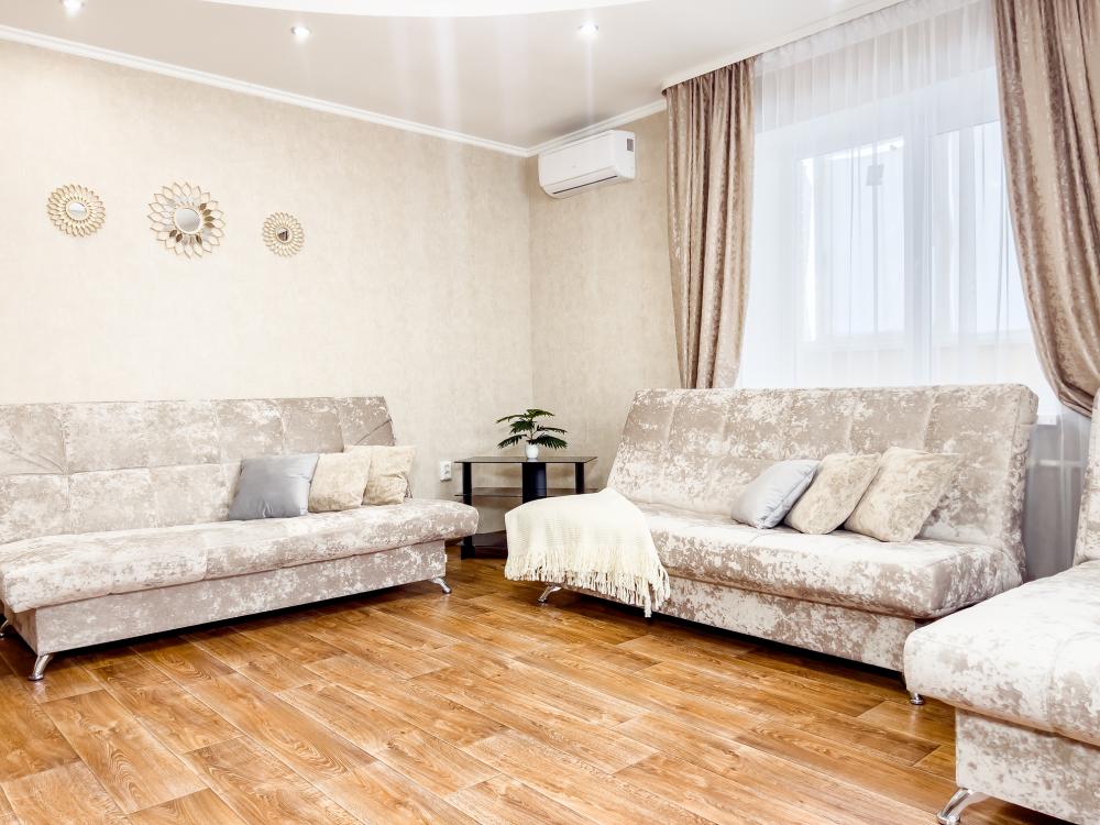 Спальные места - Двуспальная кровать (отдельная спальня) + раскладной диван (в гостиной) - размещение до 4 гостей -Постельное белье: • Для 4-х гостей: 2 комплекта белья предоставляются бесплатно. • Для 2-х гостей: 1 комплект белья входит в стоимость, второй комплект (при использовании дивана) — 300 руб. Техника и удобства - Полноценная кухня с полным набором посуды - Холодильник, микроволновка, стиральная машина - Телевизор, кондиционер, фен - Утюг с гладильной доской - Базовые гигиенические принадлежности Уборка - Уборка после каждого гостя - Смена всего постельного белья и полотенец
