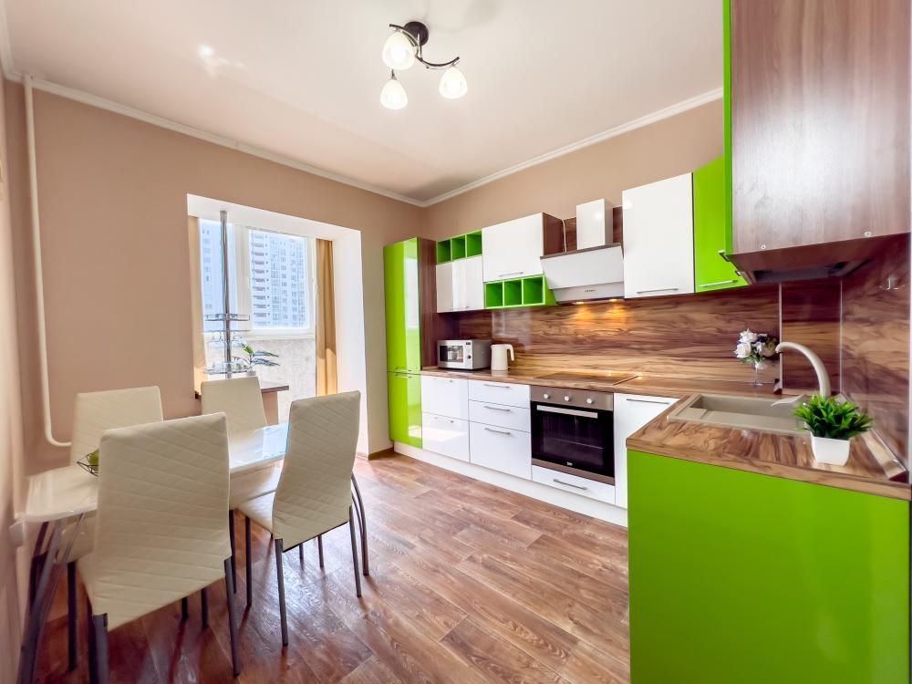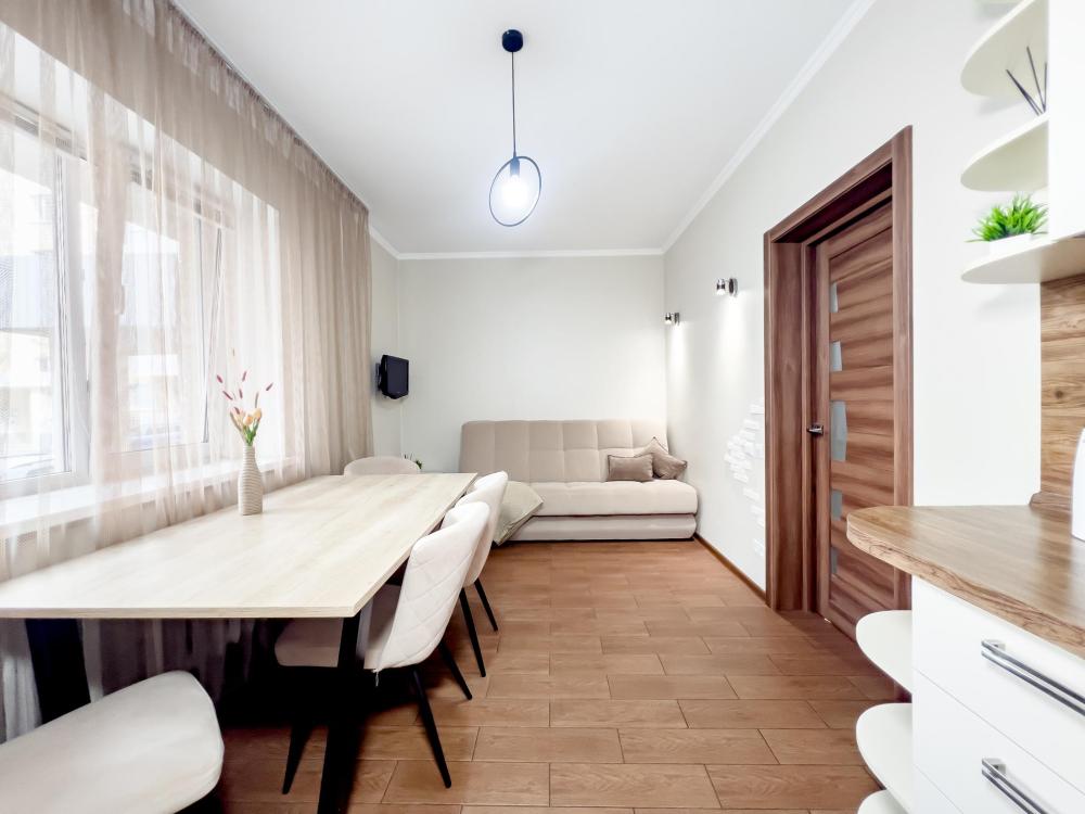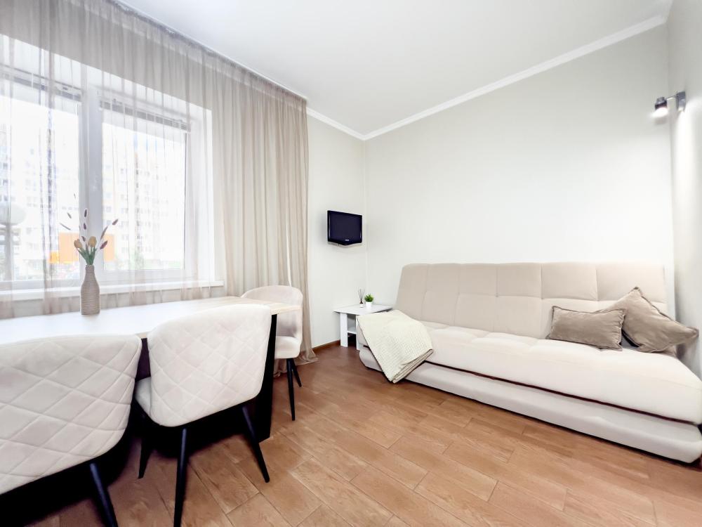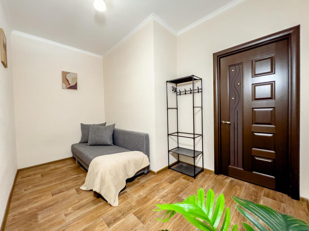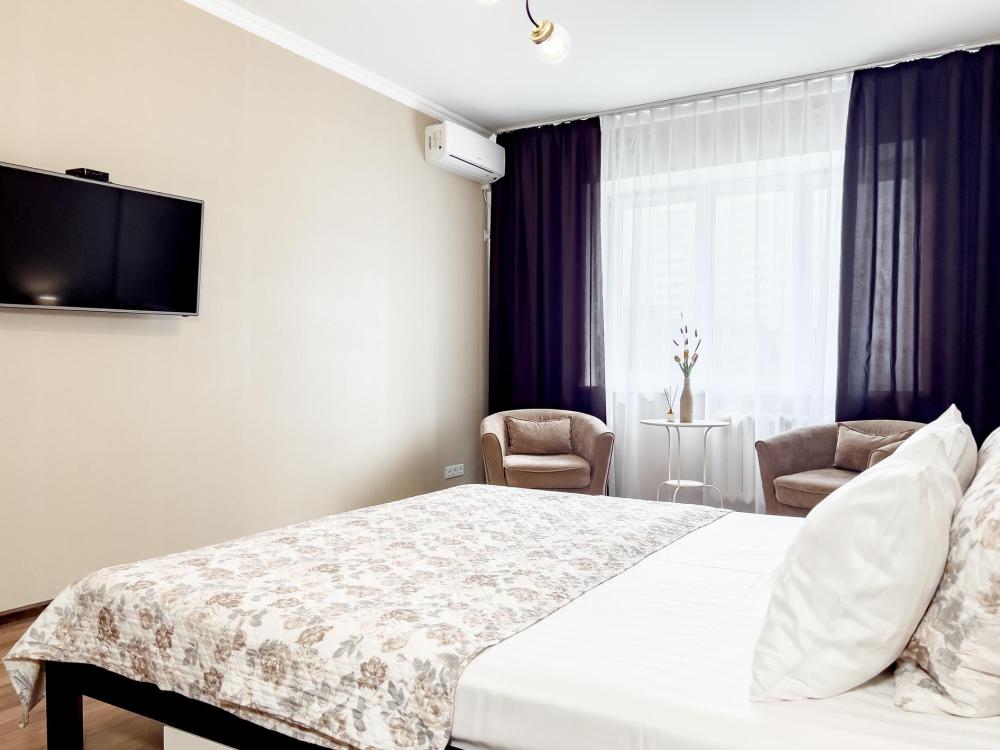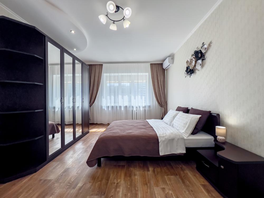 Спальные места - Двуспальная кровать (отдельная спальня) + раскладной диван (в гостиной) - размещение до 4 гостей -Постельное белье: • Для 4-х гостей: 2 комплекта белья предоставляются бесплатно. • Для 2-х гостей: 1 комплект белья входит в стоимость, второй комплект (при использовании дивана) — 300 руб. Техника и удобства - Полноценная кухня с полным набором посуды - Холодильник, микроволновка, стиральная машина - Телевизор, кондиционер, фен - Утюг с гладильной доской - Базовые гигиенические принадлежности Уборка - Уборка после каждого гостя - Смена всего постельного белья и полотенец