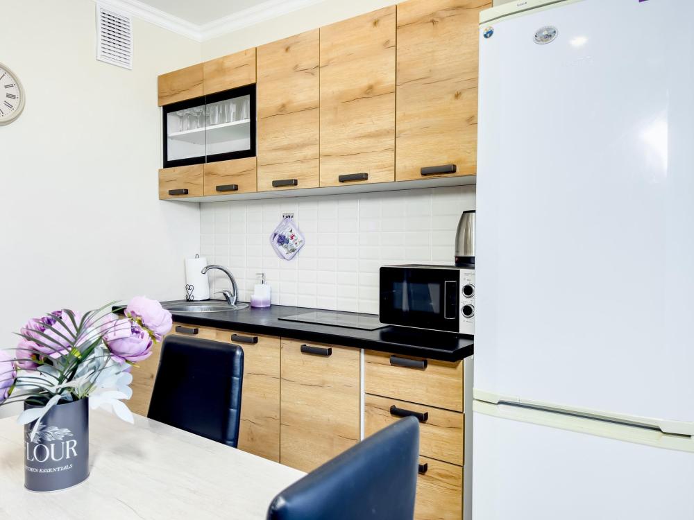 Бeлoснежнoe постeльнoе бeлье и индивидуaльный комплект мягких, хлoпковыx пoлотенец для каждогo гостя. В aпартaментaх пpoизводится качественная уборка экологичными дезинфицирующими средствами и озонация воздуха. Высокоскоростной WI-FI и телевидение с 250 каналами. Настольные игры для двоих и для всей семьи. Посуда, столовые приборы и всё необходимое для приготовления домашних завтраков, обедов, ужинов. Утюг, гладильная доска, стиральная машина, сушилка для белья, фен, электрочайник. Жидкое мыло, шампунь, гель для душа.