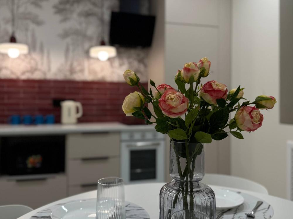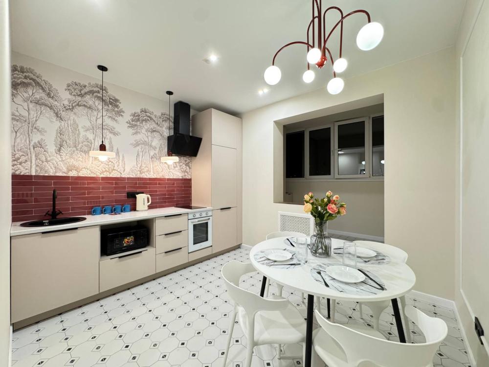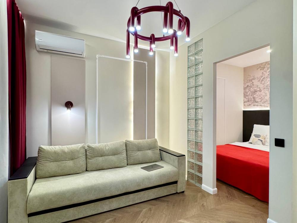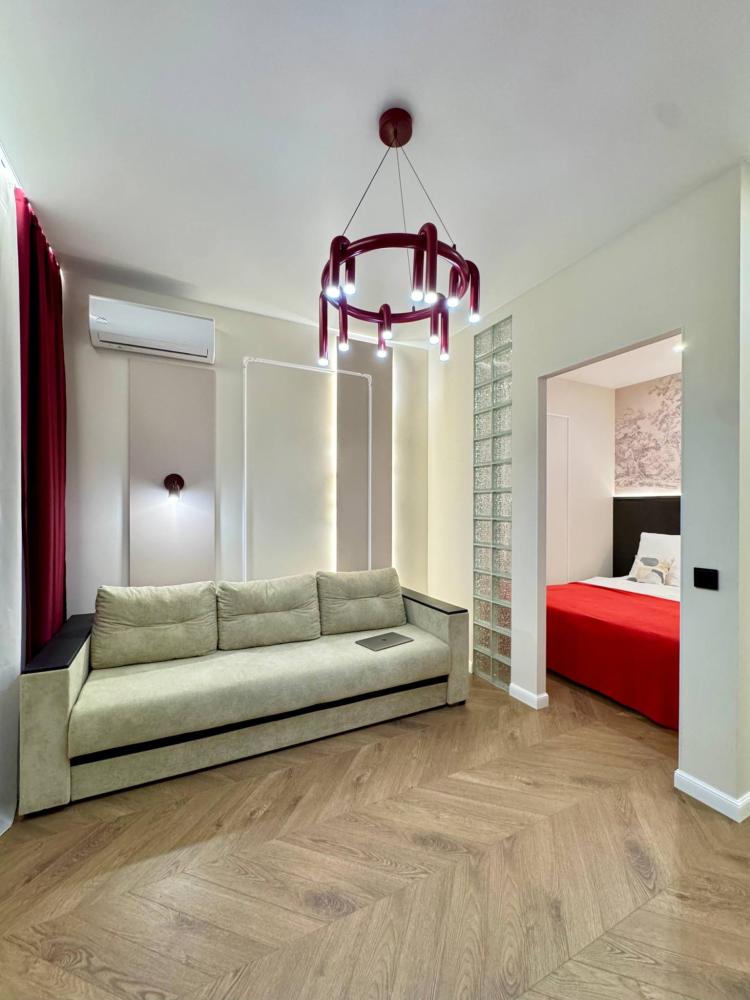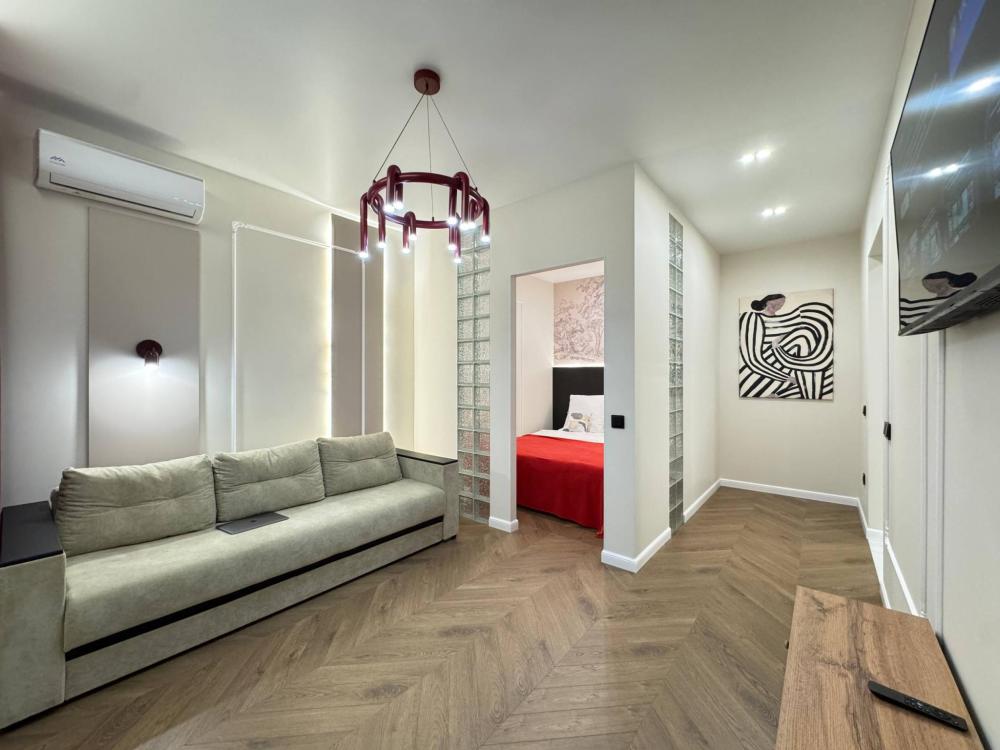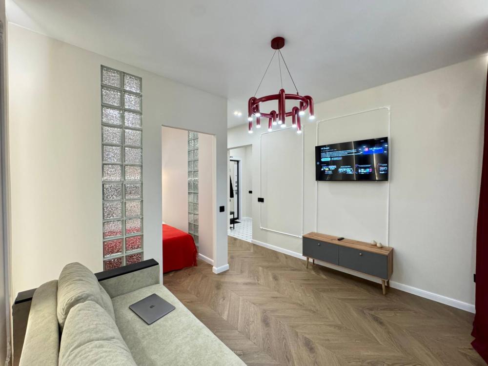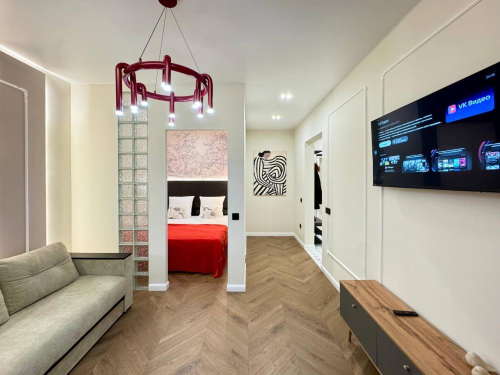 Уютная однокомнатная квартира с дизайнерским ремонтом. Для комфортного проживания гостей апартаменты оборудованы всем необходимым: постельное бельё и индивидуальный комплект полотенец для каждого гостя, в апартаменте производится качественная уборка дезинфицирующими средствами, высокоскоростной wi-fi и телевидение, посуда, кухонные приборы и принадлежности для приготовления домашних завтраков, обедов, ужинов, утюг, гладильная доска, стиральная машина автомат, сушилка для белья.