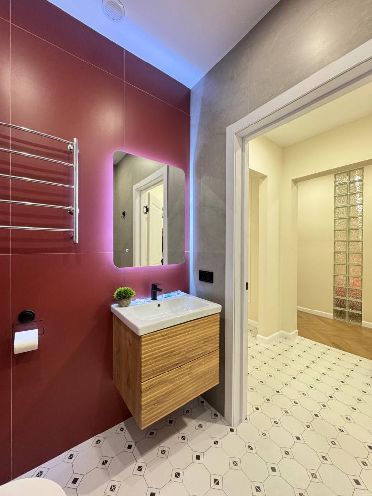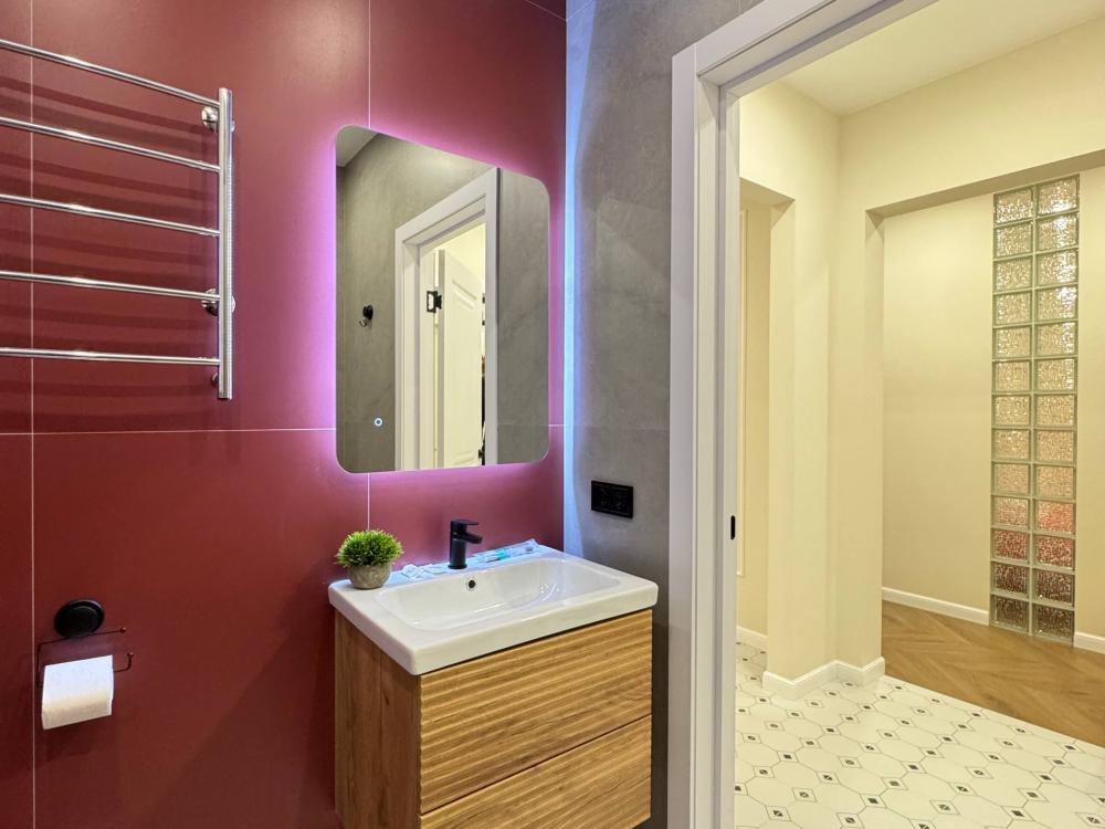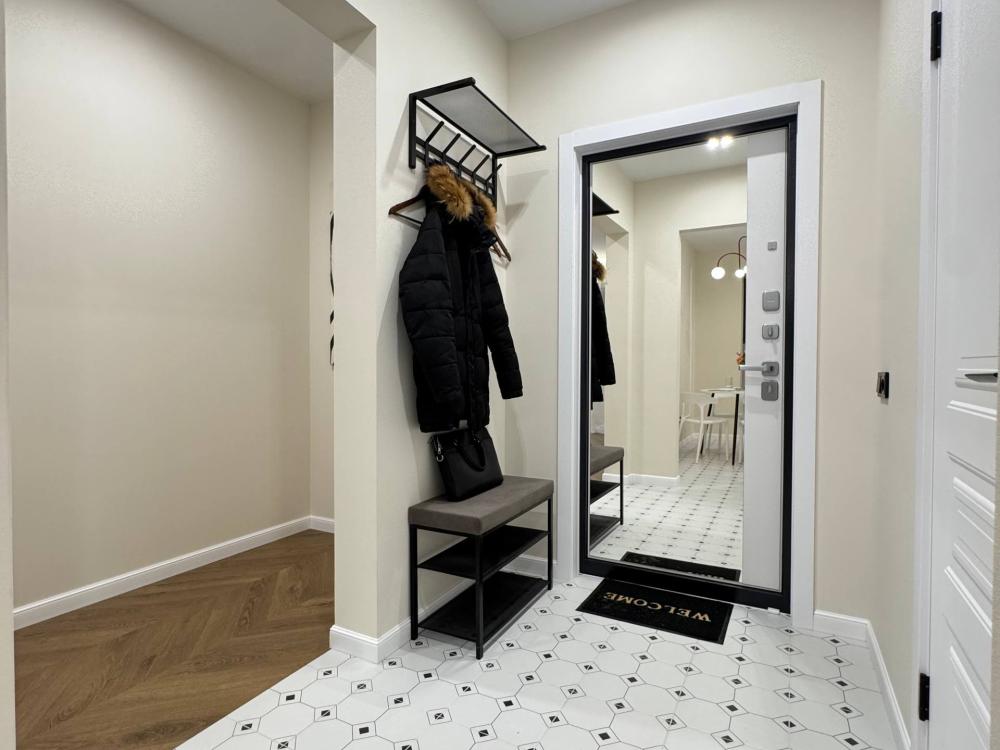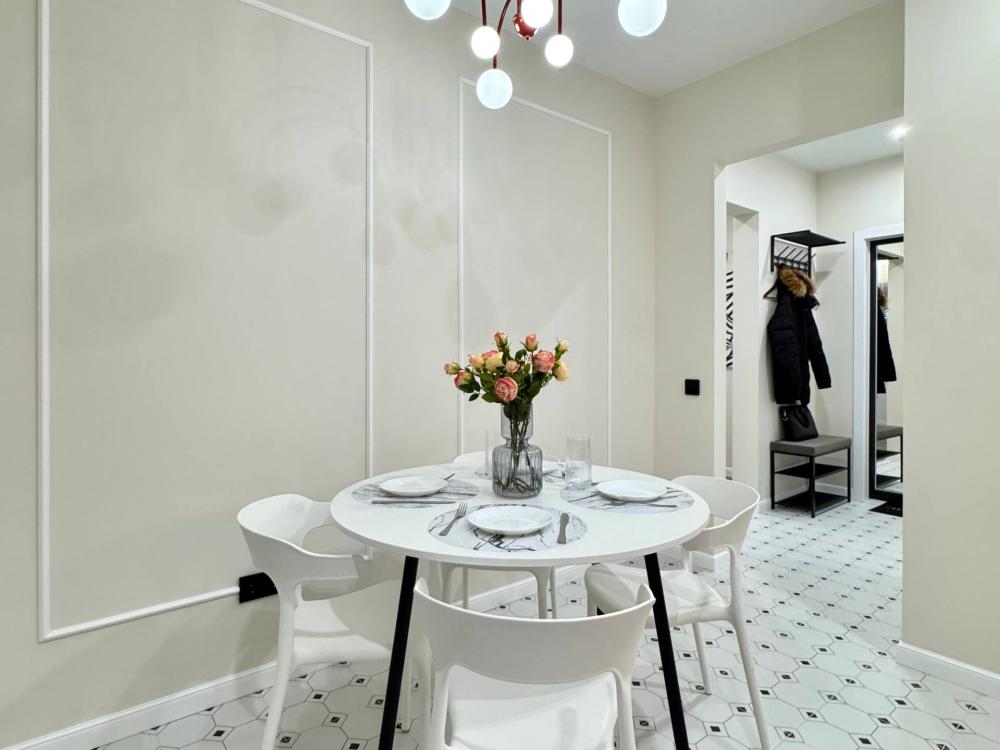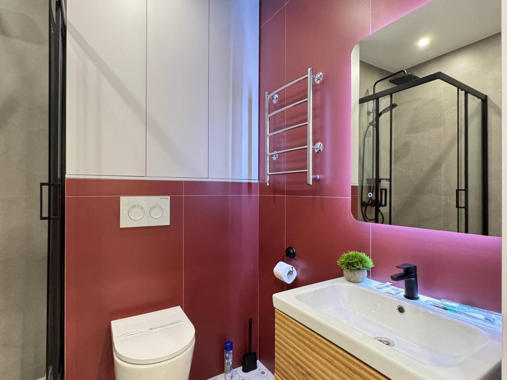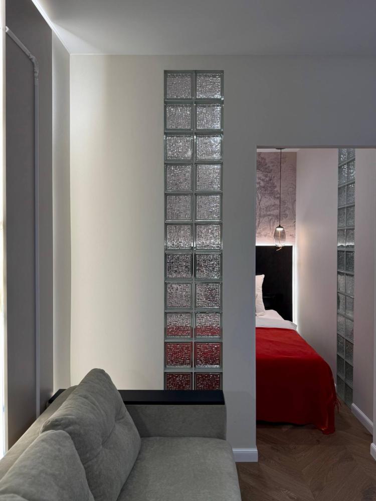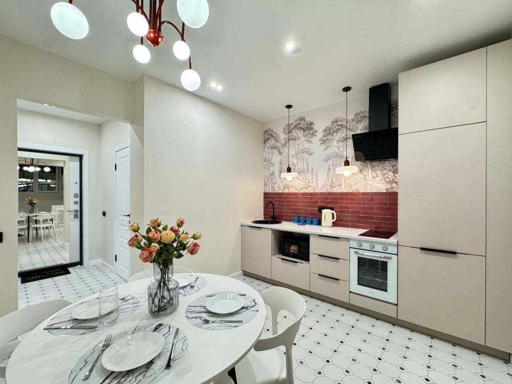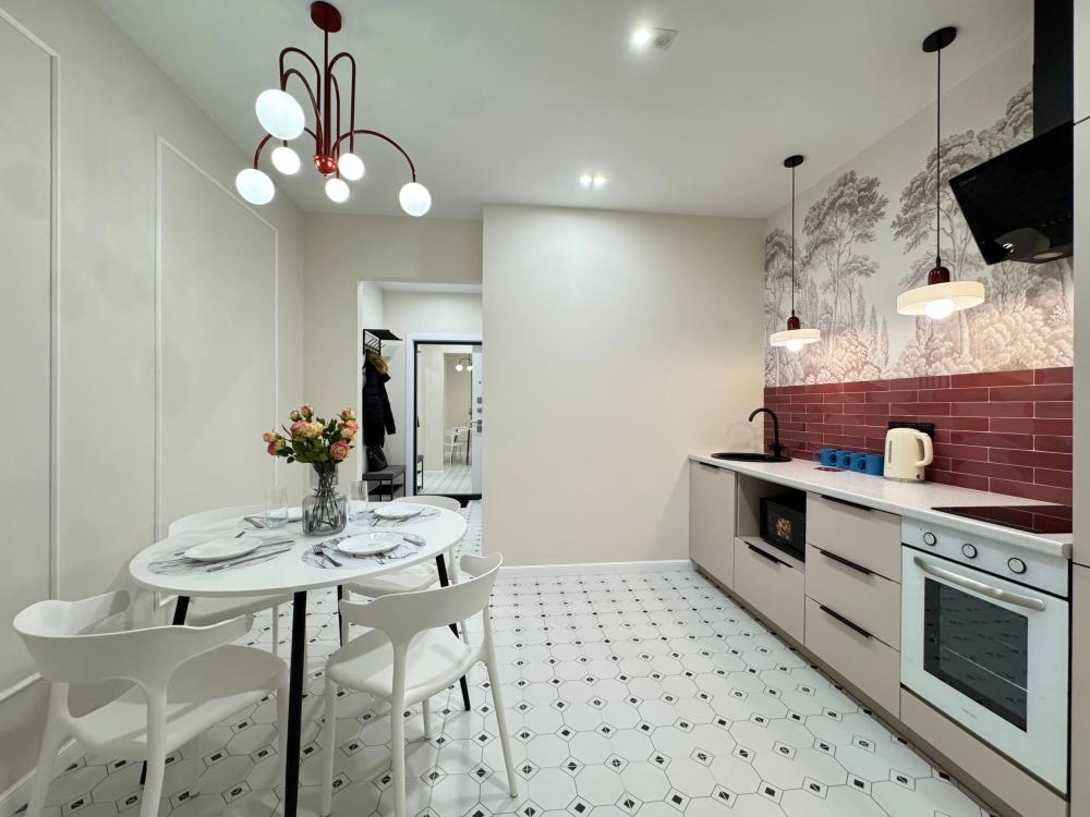 Уютная однокомнатная квартира с дизайнерским ремонтом. Для комфортного проживания гостей апартаменты оборудованы всем необходимым: постельное бельё и индивидуальный комплект полотенец для каждого гостя, в апартаменте производится качественная уборка дезинфицирующими средствами, высокоскоростной wi-fi и телевидение, посуда, кухонные приборы и принадлежности для приготовления домашних завтраков, обедов, ужинов, утюг, гладильная доска, стиральная машина автомат, сушилка для белья.