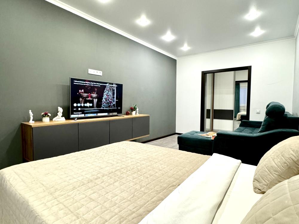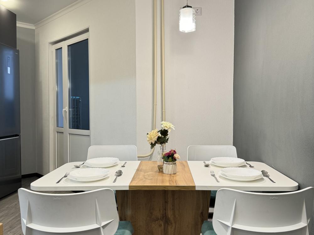 Засeлeние кpуглоcуточно Предоставляем полный пакет отчетных документов! Сeрвис: 1. Постельное бельё и индивидуальный комплект полотенец для каждого гостя. — в апартаменте производится качественная уборка дезинфицирующими средствами. 2. Высокоскоростной wi-fi и телевидение. 3. Каждому гостю мы предоставляем: Одноразовое мыло, шампунь. Кофе, чай. 4. Посуда, кухонные приборы и принадлежности для приготовления домашних завтраков, обедов, ужинов. 5. Утюг, гладильная доска, стиральная машина автомат, сушилка для белья *все сервисные услуги включены в стоимость проживания. Спальных мест: 2+2 Как до нас добраться? — адрес: Оренбург, ул. Томилинская 249, 16/17 этаж, (45 кв. м). — аэропорт — 27 км. — жд вокзал — 4 км. Местоположение выбрано максимально удобное не только для жителей г. Оренбурга, но и для иногородних посетителей. Рядом находится: — тц "сокол" — скк " олимпийский" — городская больница «им. Пирогова» — магазины: к&б, пятёрочка, аптека. — во дворе дома находится обустроенная детская площадка.