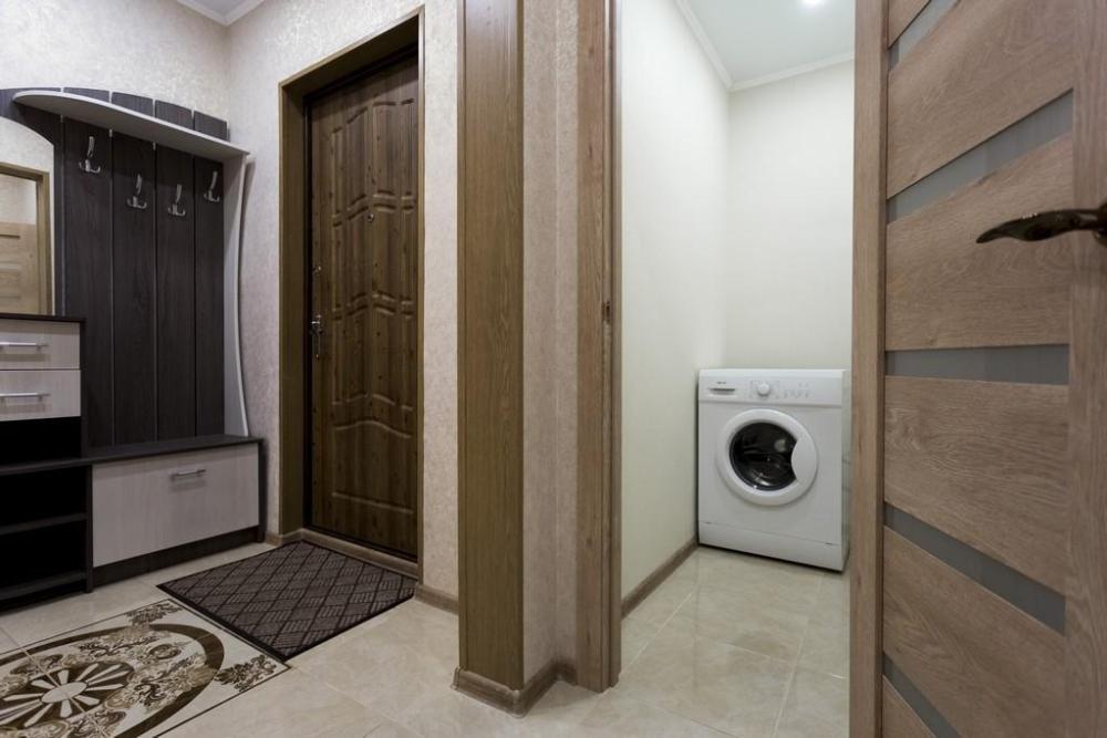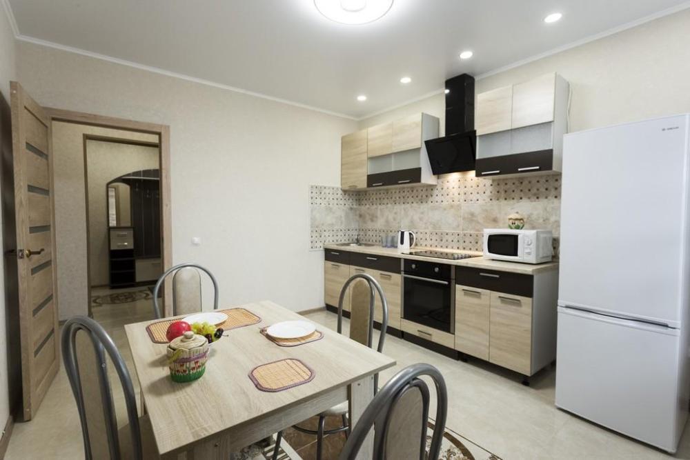 В КВАРТИРЕ ИМЕЮТСЯ: Кондиционер; ЖК-телевизор с подключенным кабельным ТВ; Комплект хлопкового постельного белья и полотенца; Бытовая техника (стиральная машинка, СВЧ-печь, холодильник, плита, чайник, утюг, фен); Средства для личной гигиены (шампунь, гель для душа, мыло); Посуда для приготовления пищи; Гладильная доска и сушилка. Цена зависит от количества проживающих, срока проживания, а также дня недели бронирования.