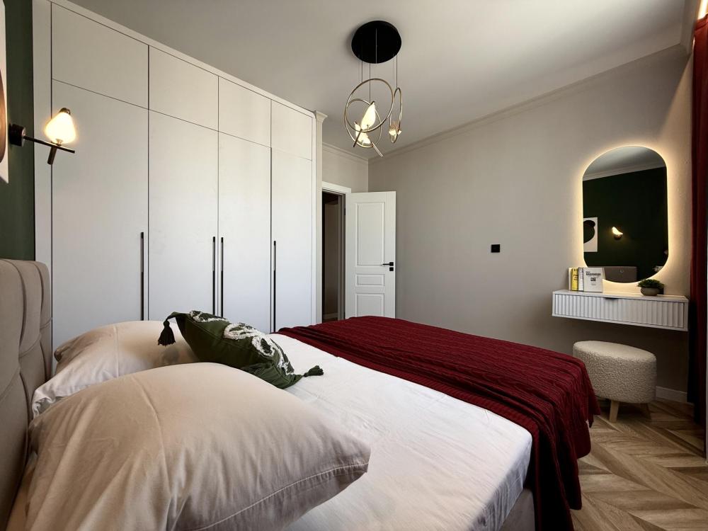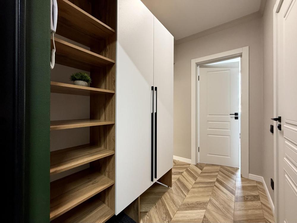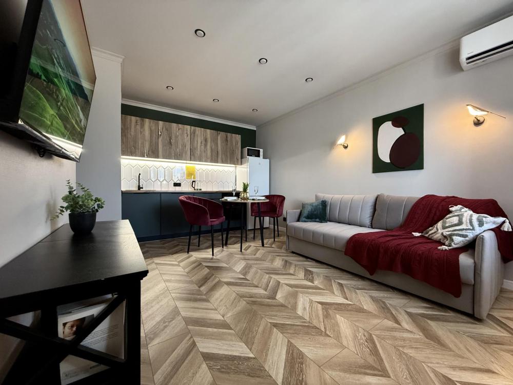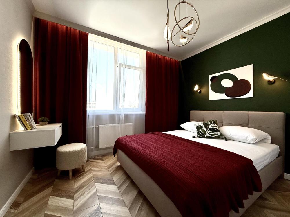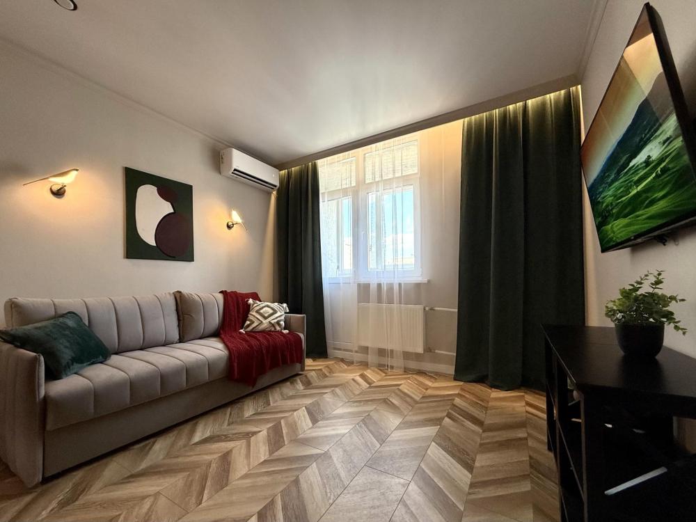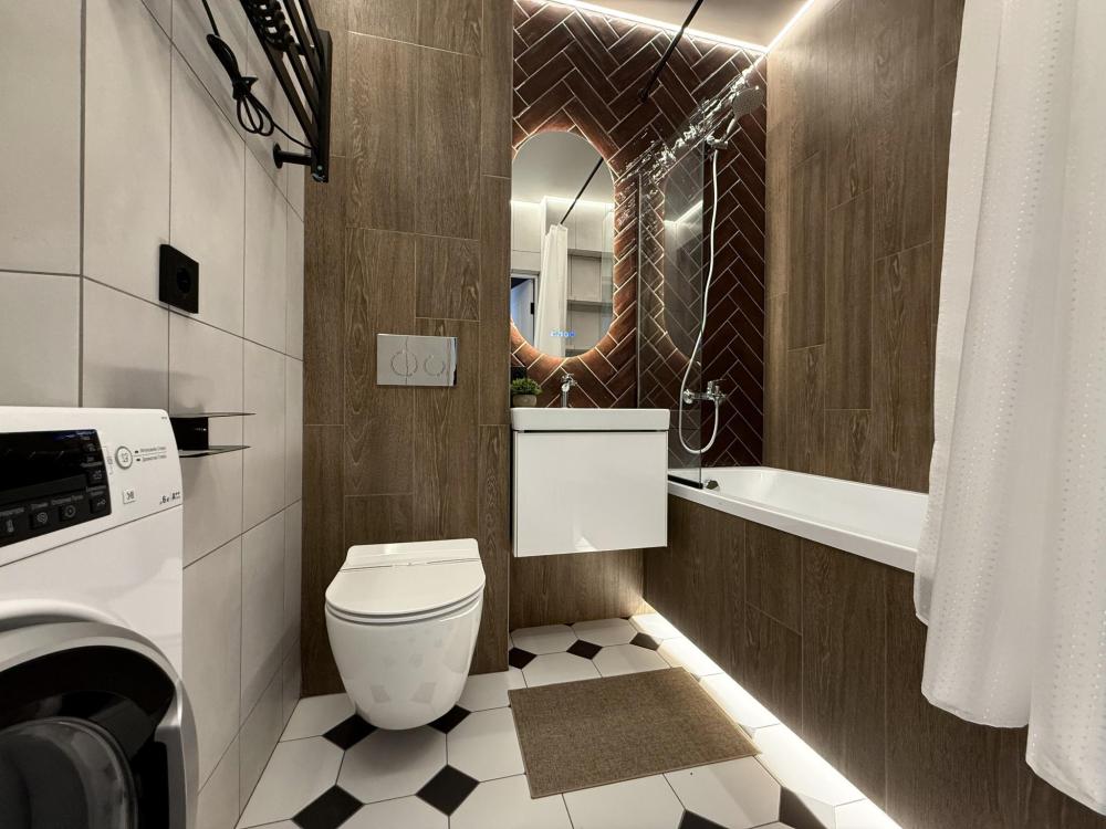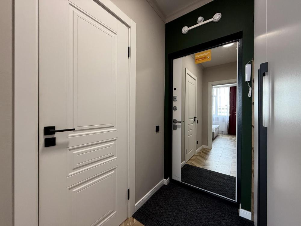 В КВАРТИРЕ ИМЕЮТСЯ: Кондиционер; ЖК-телевизор с подключенным кабельным ТВ; Комплект хлопкового постельного белья и полотенца; Бытовая техника (стиральная машинка, СВЧ-печь, холодильник, плита, чайник, утюг, фен); Средства для личной гигиены (шампунь, гель для душа, мыло); Посуда для приготовления пищи; Гладильная доска и сушилка. Цена зависит от количества проживающих, срока проживания, а также дня недели бронирования.