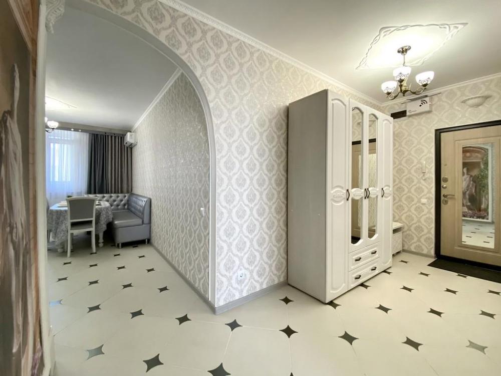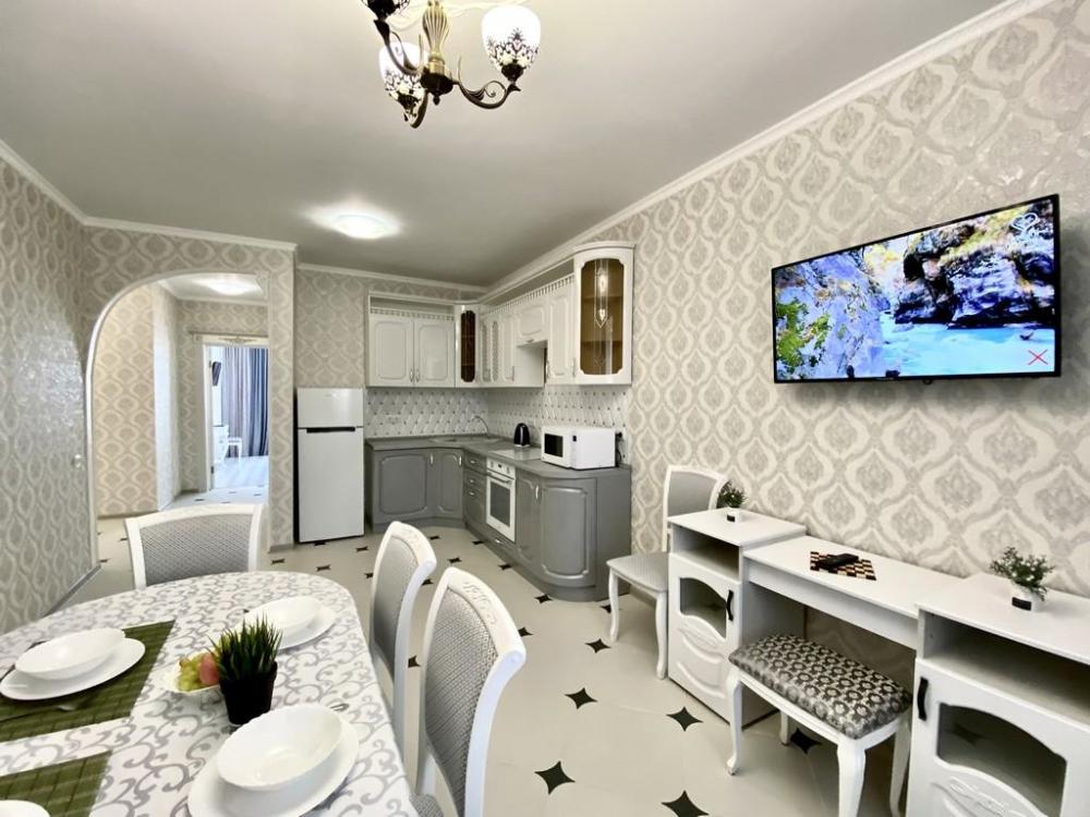 В КВАРТИРЕ ИМЕЮТСЯ: Кондиционер; ЖК-телевизор с подключенным кабельным ТВ; Комплект хлопкового постельного белья и полотенца; Бытовая техника (стиральная машинка, СВЧ-печь, холодильник, плита, чайник, утюг, фен); Средства для личной гигиены (шампунь, гель для душа, мыло); Посуда для приготовления пищи; Гладильная доска и сушилка. Цена зависит от количества проживающих, срока проживания, а также дня недели бронирования.