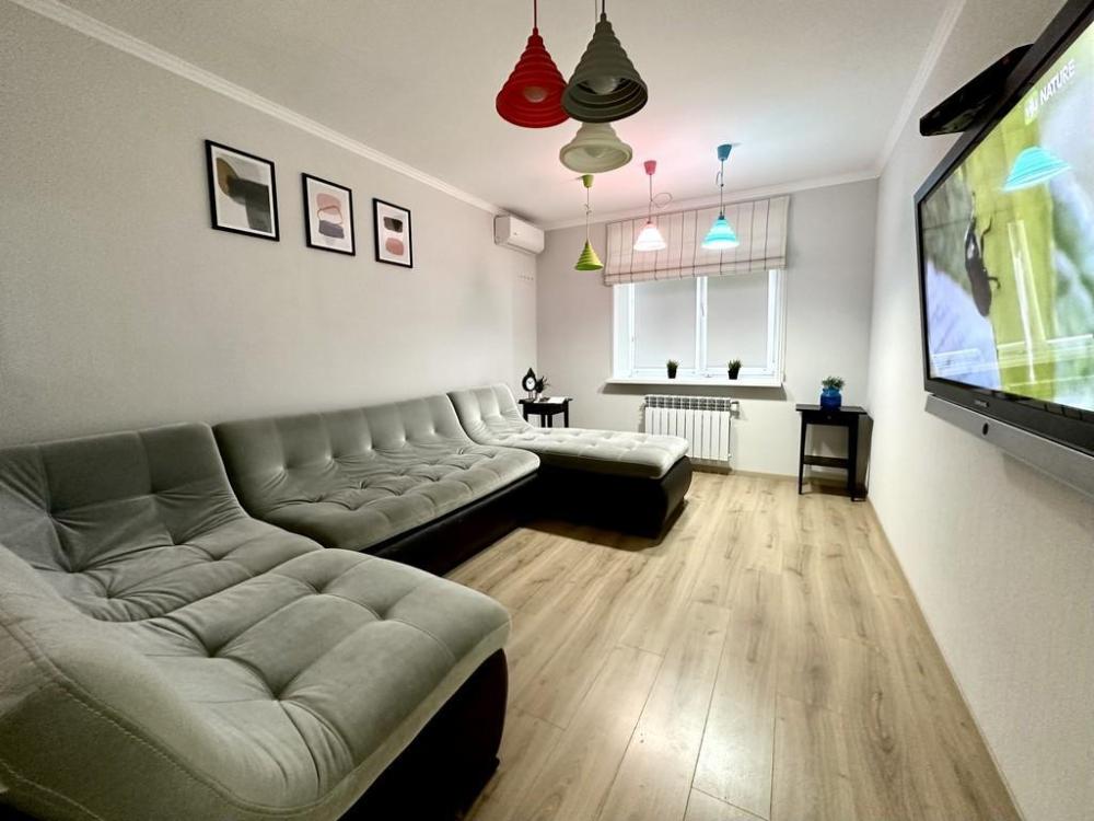 В КВАРТИРЕ ИМЕЮТСЯ: Кондиционер; ЖК-телевизор с подключенным кабельным ТВ; Комплект хлопкового постельного белья и полотенца; Бытовая техника (стиральная машинка, СВЧ-печь, холодильник, плита, чайник, утюг, фен); Средства для личной гигиены (шампунь, гель для душа, мыло); Посуда для приготовления пищи; Гладильная доска и сушилка. Цена зависит от количества проживающих, срока проживания, а также дня недели бронирования.
