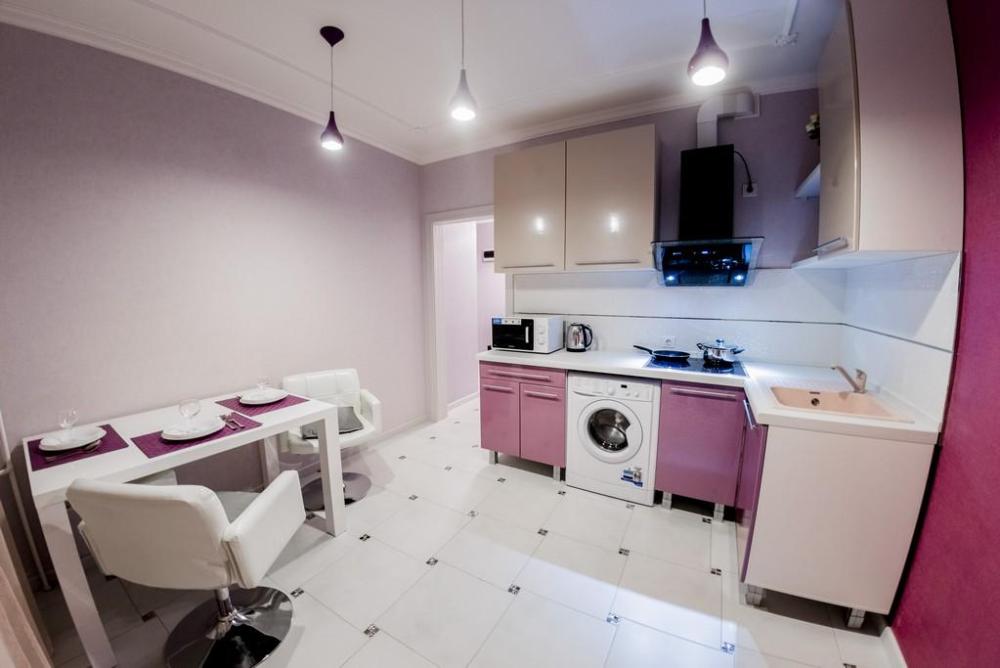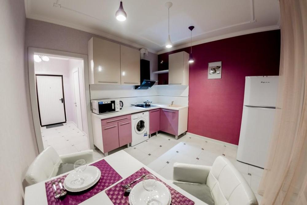 В КВАРТИРЕ ИМЕЮТСЯ: Кондиционер; ЖК-телевизор с подключенным кабельным ТВ; Комплект хлопкового постельного белья и полотенца; Бытовая техника (стиральная машинка, СВЧ-печь, холодильник, плита, чайник, утюг, фен); Средства для личной гигиены (шампунь, гель для душа, мыло); Посуда для приготовления пищи; Гладильная доска и сушилка. Цена зависит от количества проживающих, срока проживания, а также дня недели бронирования.