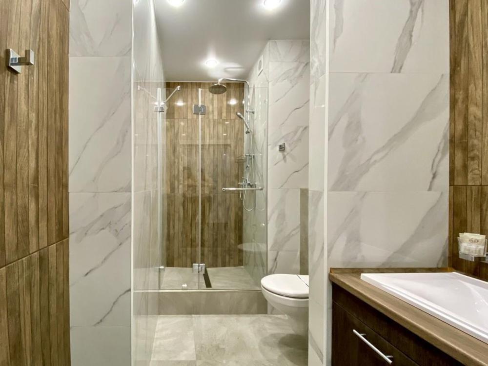 В КВАРТИРЕ ИМЕЮТСЯ: Кондиционер; ЖК-телевизор с подключенным кабельным ТВ; Комплект хлопкового постельного белья и полотенца; Бытовая техника (стиральная машинка, СВЧ-печь, холодильник, плита, чайник, утюг, фен); Средства для личной гигиены (шампунь, гель для душа, мыло); Посуда для приготовления пищи; Гладильная доска и сушилка. Цена зависит от количества проживающих, срока проживания, а также дня недели бронирования.