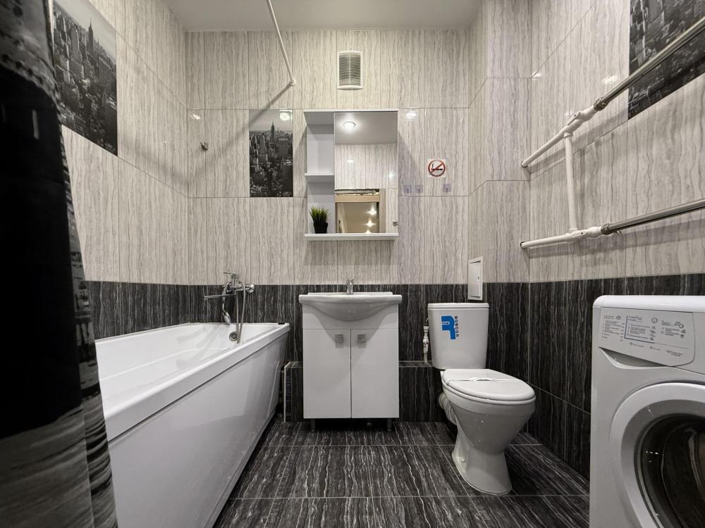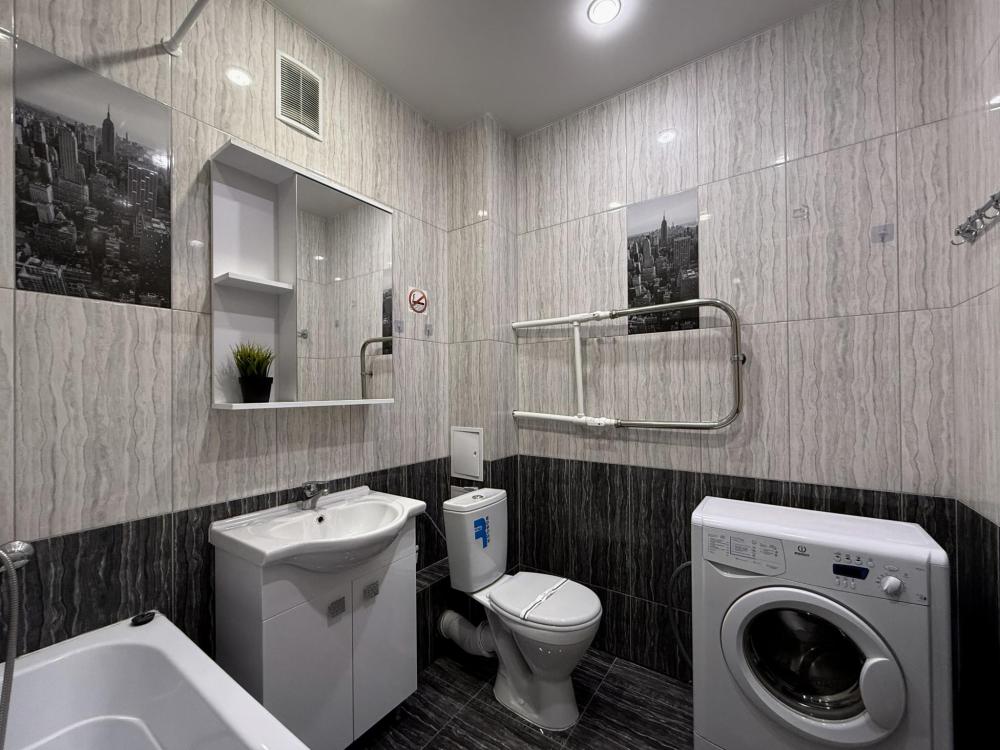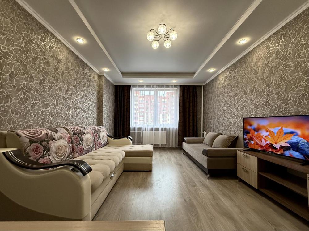 В КВАРТИРЕ ИМЕЮТСЯ: Кондиционер; ЖК-телевизор с подключенным кабельным ТВ; Комплект хлопкового постельного белья и полотенца; Бытовая техника (стиральная машинка, СВЧ-печь, холодильник, плита, чайник, утюг, фен); Средства для личной гигиены (шампунь, гель для душа, мыло); Посуда для приготовления пищи; Гладильная доска и сушилка. Цена зависит от количества проживающих, срока проживания, а также дня недели бронирования.