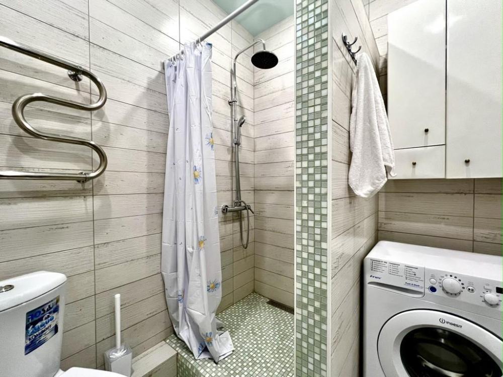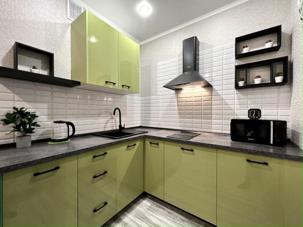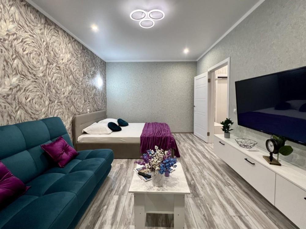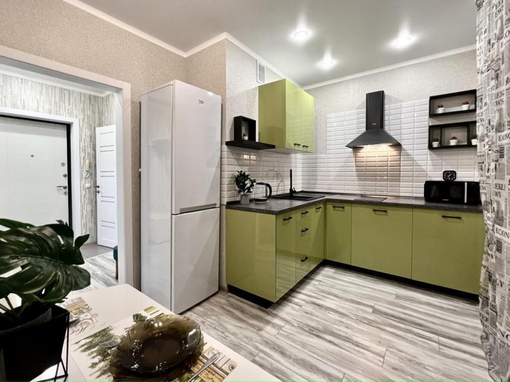 В КВАРТИРЕ ИМЕЮТСЯ: Кондиционер; ЖК-телевизор с подключенным кабельным ТВ; Комплект хлопкового постельного белья и полотенца; Бытовая техника (стиральная машинка, СВЧ-печь, холодильник, плита, чайник, утюг, фен); Средства для личной гигиены (шампунь, гель для душа, мыло); Посуда для приготовления пищи; Гладильная доска и сушилка. Цена зависит от количества проживающих, срока проживания, а также дня недели бронирования.