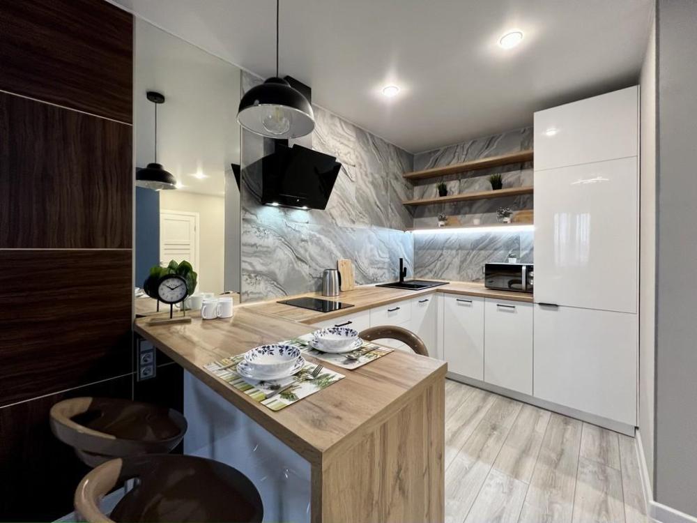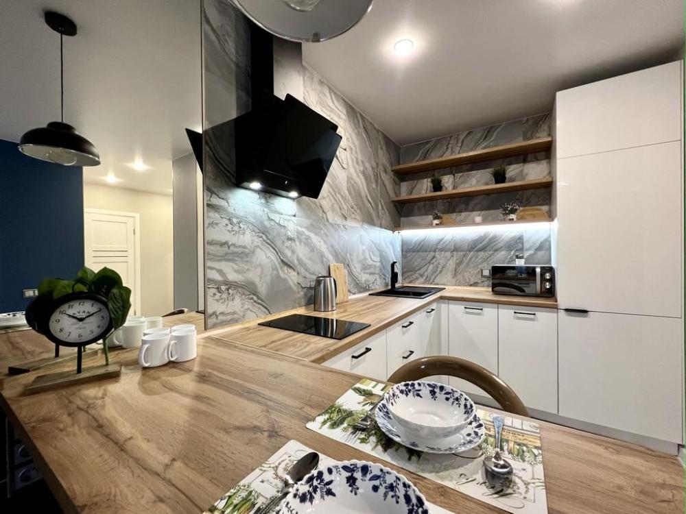 В КВАРТИРЕ ИМЕЮТСЯ: Кондиционер; ЖК-телевизор с подключенным кабельным ТВ; Комплект хлопкового постельного белья и полотенца; Бытовая техника (стиральная машинка, СВЧ-печь, холодильник, плита, чайник, утюг, фен); Средства для личной гигиены (шампунь, гель для душа, мыло); Посуда для приготовления пищи; Гладильная доска и сушилка. Цена зависит от количества проживающих, срока проживания, а также дня недели бронирования.