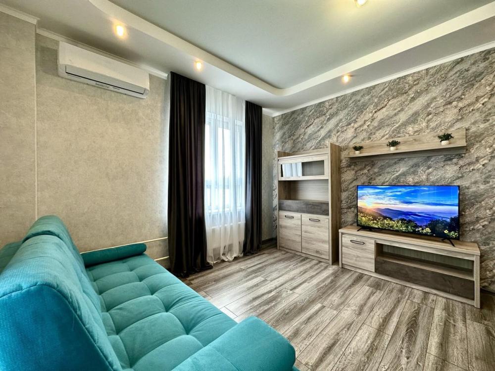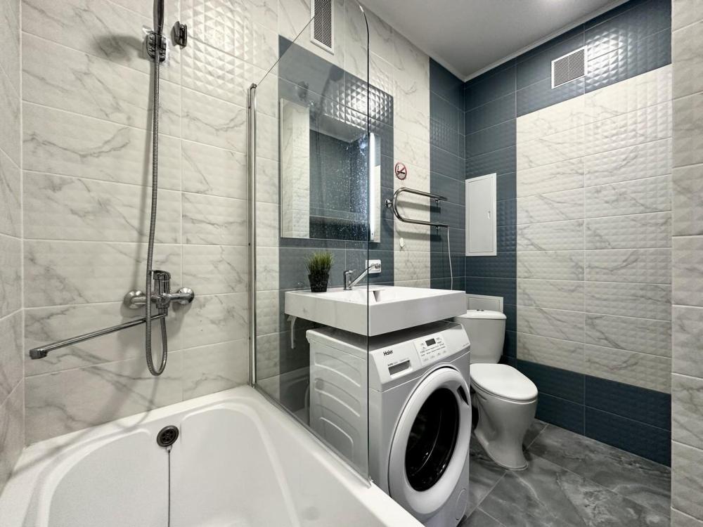 В КВАРТИРЕ ИМЕЮТСЯ: Кондиционер; ЖК-телевизор с подключенным кабельным ТВ; Комплект хлопкового постельного белья и полотенца; Бытовая техника (стиральная машинка, СВЧ-печь, холодильник, плита, чайник, утюг, фен); Средства для личной гигиены (шампунь, гель для душа, мыло); Посуда для приготовления пищи; Гладильная доска и сушилка. Цена зависит от количества проживающих, срока проживания, а также дня недели бронирования.