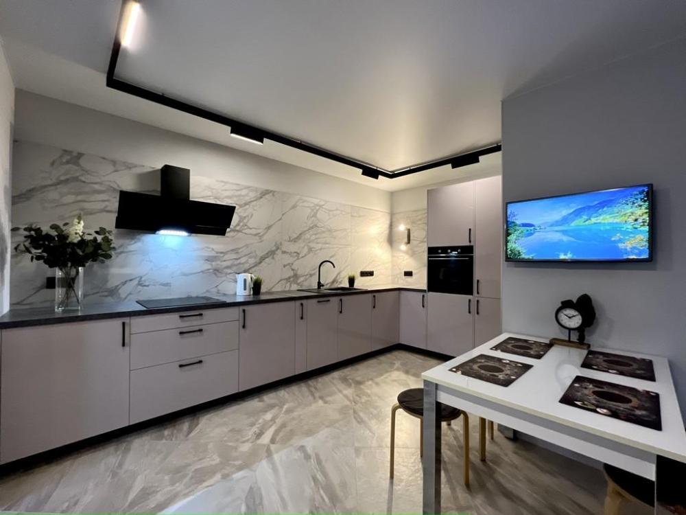 В КВАРТИРЕ ИМЕЮТСЯ: Кондиционер; ЖК-телевизор с подключенным кабельным ТВ; Комплект хлопкового постельного белья и полотенца; Бытовая техника (стиральная машинка, СВЧ-печь, холодильник, плита, чайник, утюг, фен); Средства для личной гигиены (шампунь, гель для душа, мыло); Посуда для приготовления пищи; Гладильная доска и сушилка. Цена зависит от количества проживающих, срока проживания, а также дня недели бронирования.