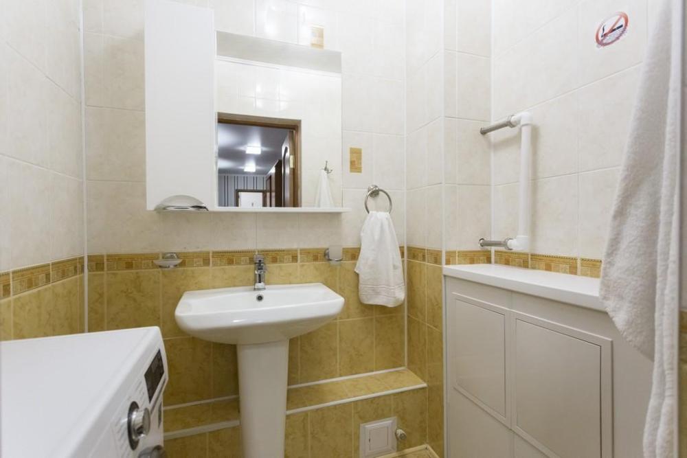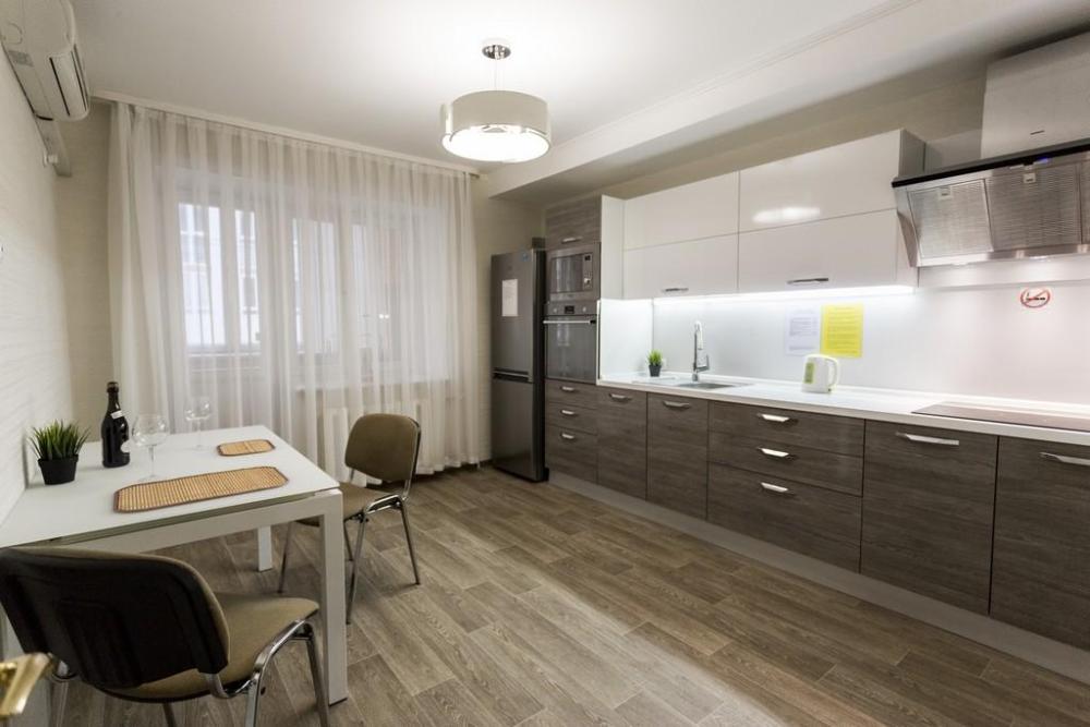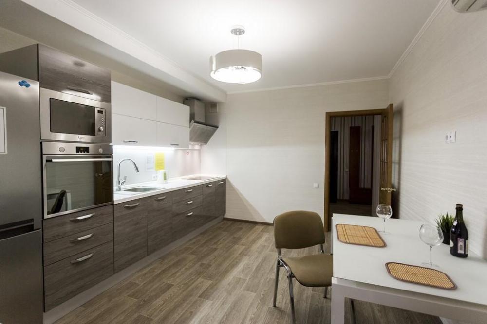 В КВАРТИРЕ ИМЕЮТСЯ: Кондиционер; ЖК-телевизор с подключенным кабельным ТВ; Комплект хлопкового постельного белья и полотенца; Бытовая техника (стиральная машинка, СВЧ-печь, холодильник, плита, чайник, утюг, фен); Средства для личной гигиены (шампунь, гель для душа, мыло); Посуда для приготовления пищи; Гладильная доска и сушилка. Цена зависит от количества проживающих, срока проживания, а также дня недели бронирования.