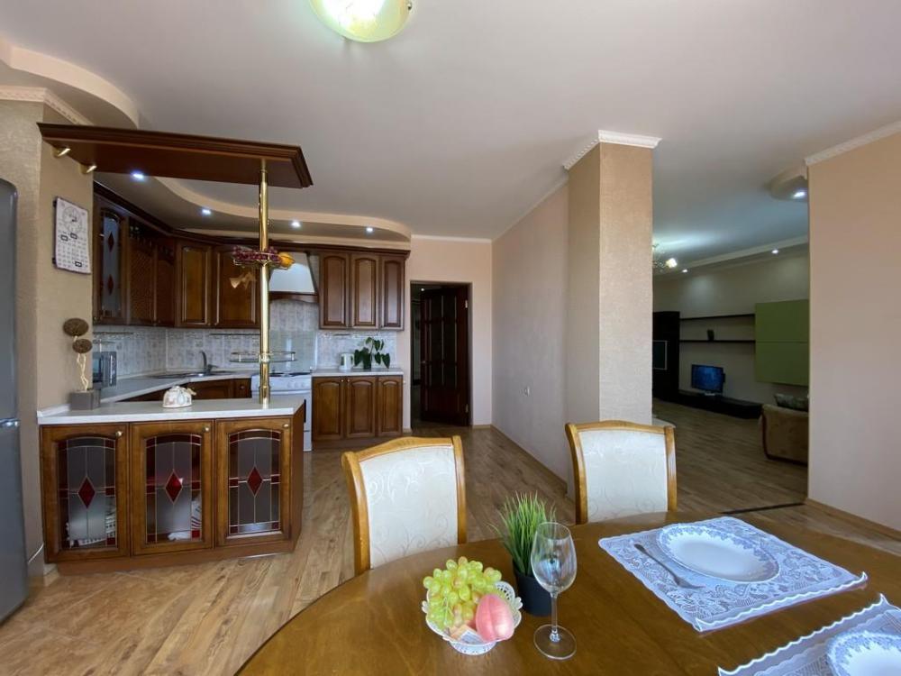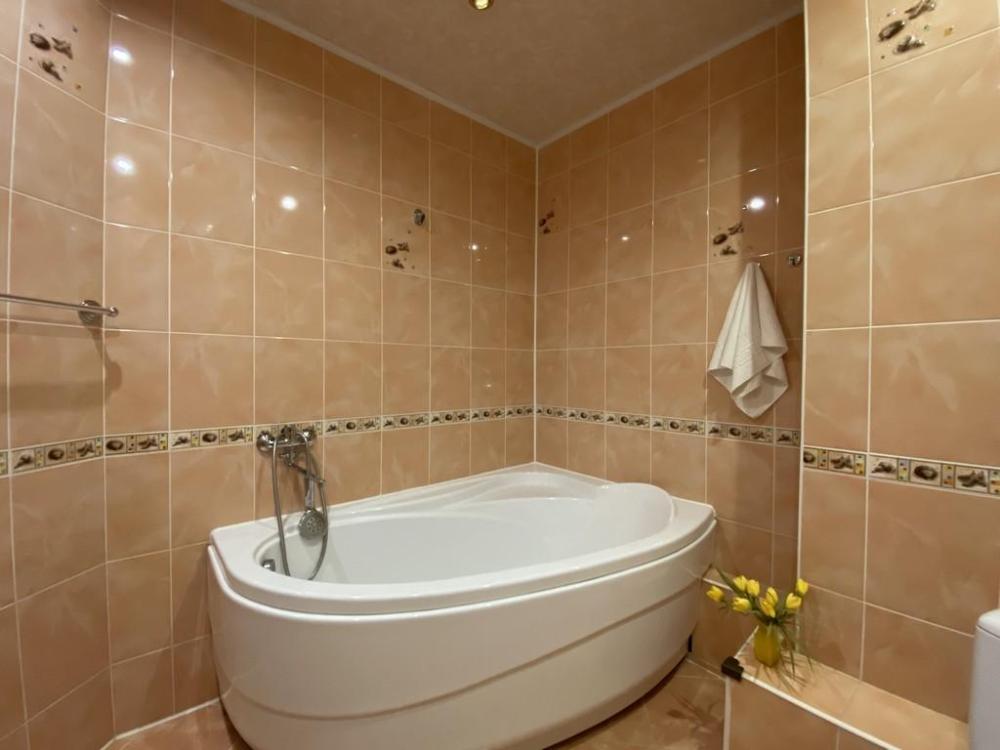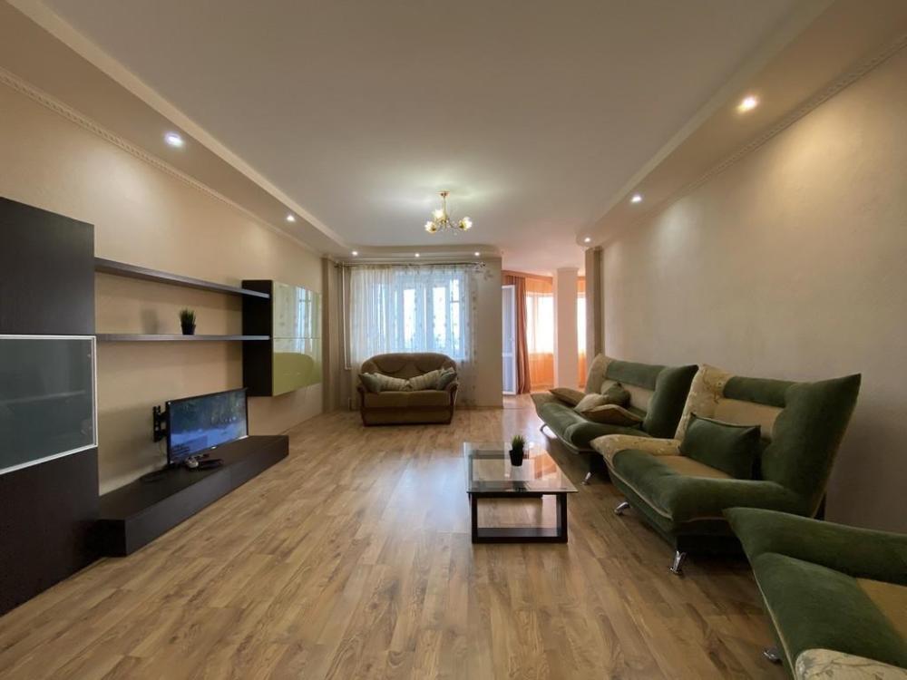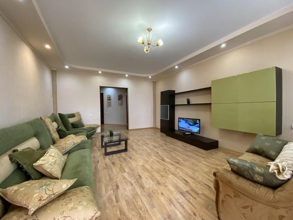 В КВАРТИРЕ ИМЕЮТСЯ: Кондиционер; ЖК-телевизор с подключенным кабельным ТВ; Комплект хлопкового постельного белья и полотенца; Бытовая техника (стиральная машинка, СВЧ-печь, холодильник, плита, чайник, утюг, фен); Средства для личной гигиены (шампунь, гель для душа, мыло); Посуда для приготовления пищи; Гладильная доска и сушилка. Цена зависит от количества проживающих, срока проживания, а также дня недели бронирования.