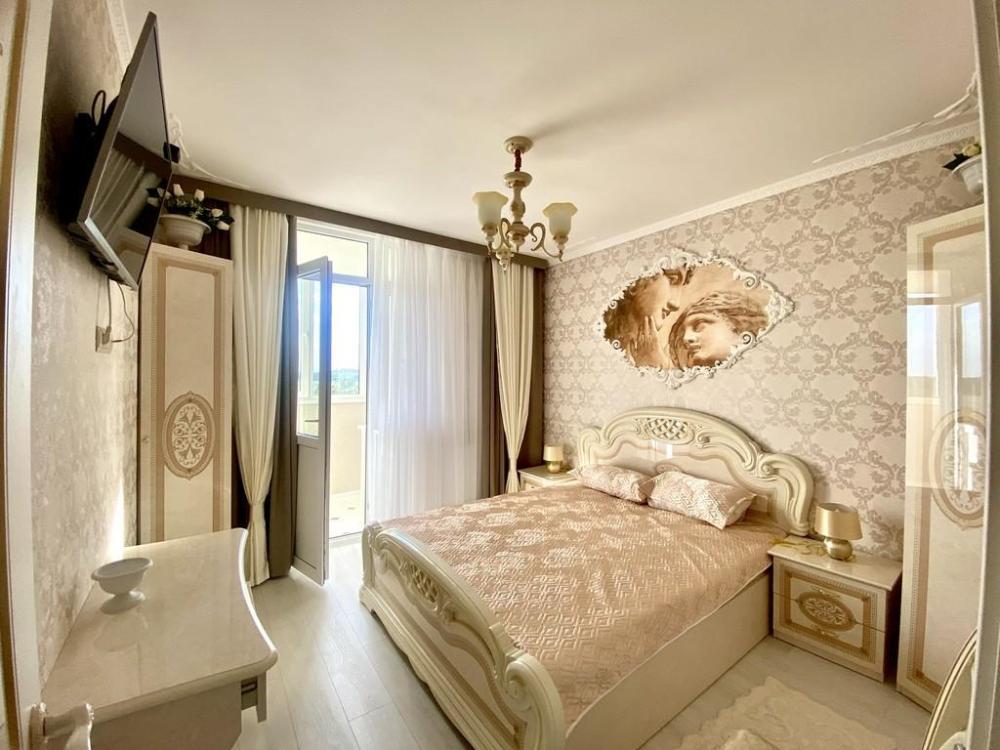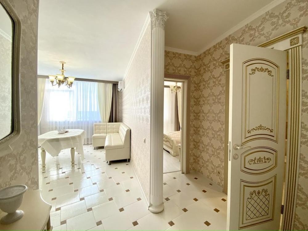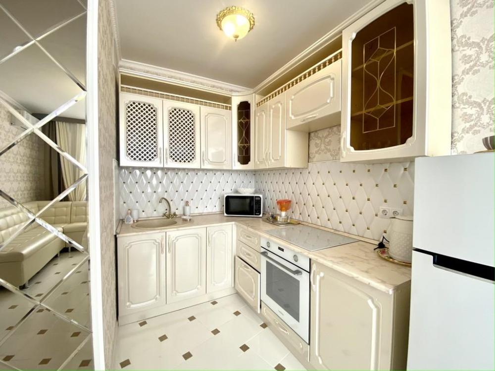 В КВАРТИРЕ ИМЕЮТСЯ: Кондиционер; ЖК-телевизор с подключенным кабельным ТВ; Комплект хлопкового постельного белья и полотенца; Бытовая техника (стиральная машинка, СВЧ-печь, холодильник, плита, чайник, утюг, фен); Средства для личной гигиены (шампунь, гель для душа, мыло); Посуда для приготовления пищи; Гладильная доска и сушилка. Цена зависит от количества проживающих, срока проживания, а также дня недели бронирования.