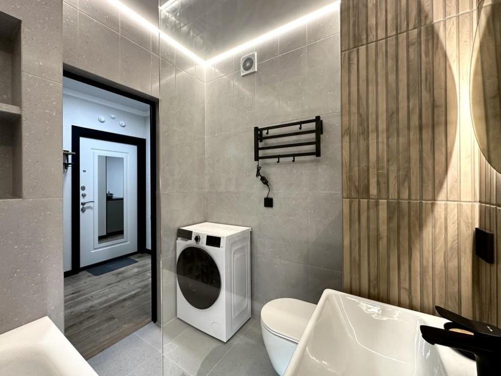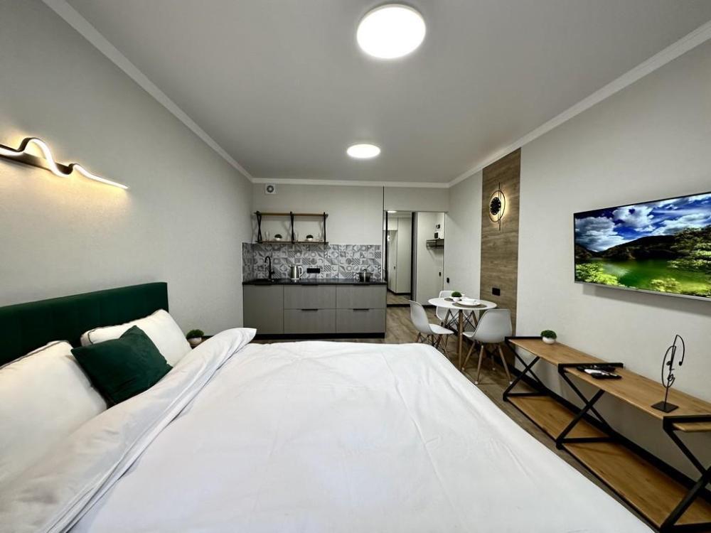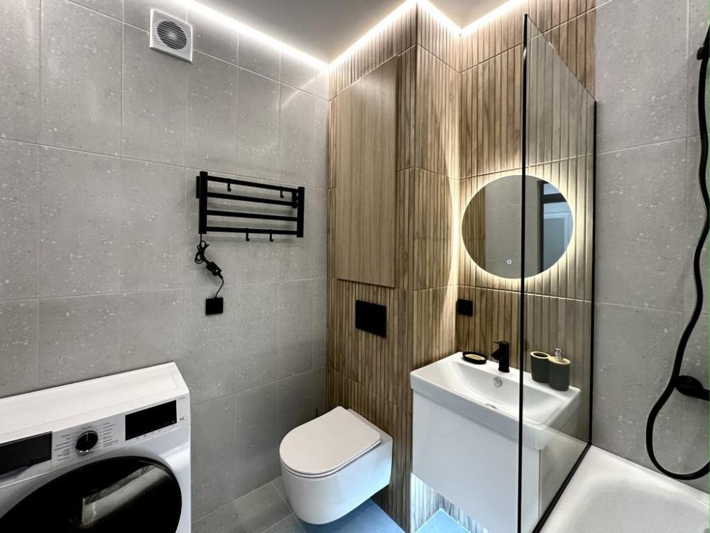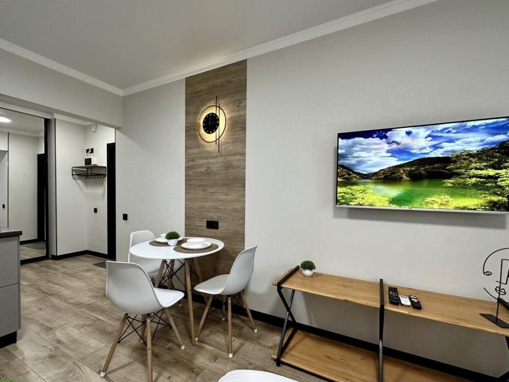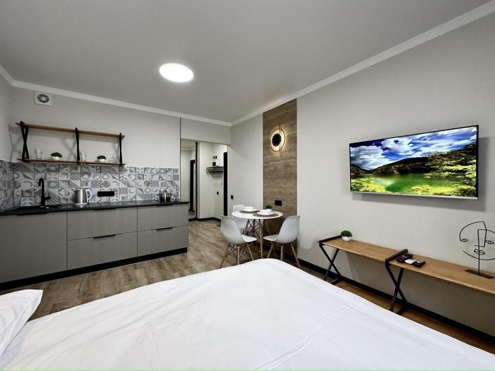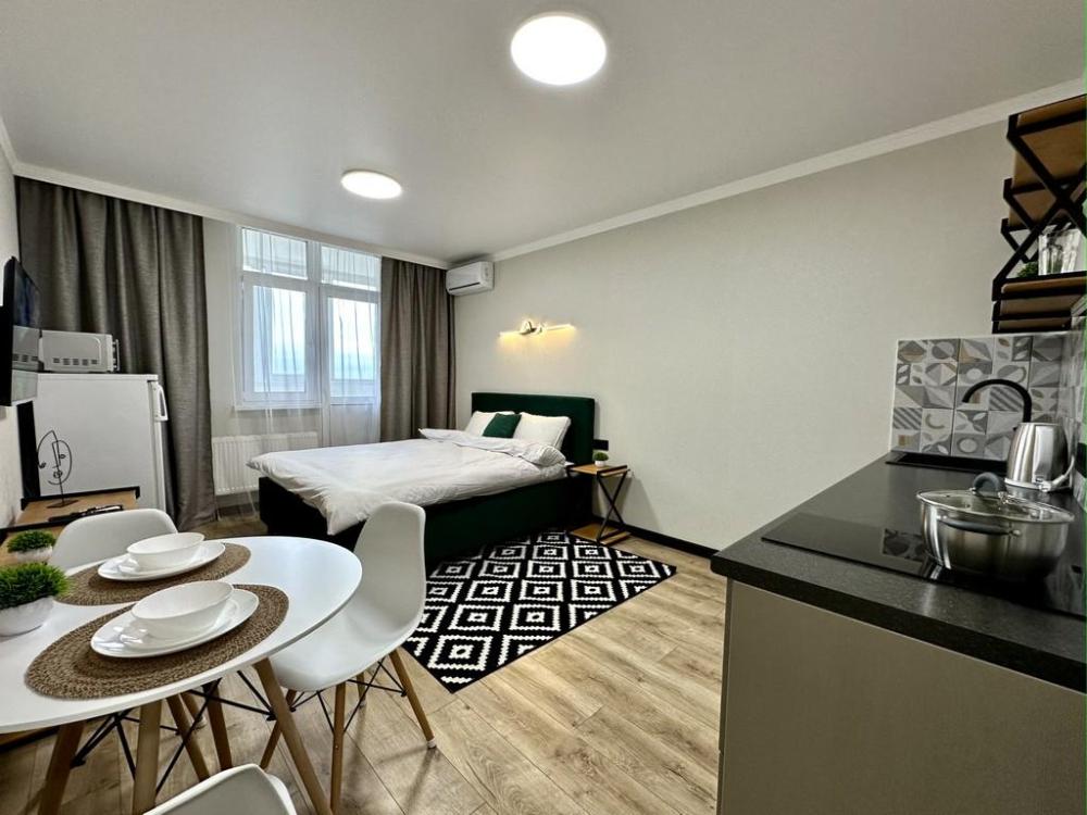 В КВАРТИРЕ ИМЕЮТСЯ: Кондиционер; ЖК-телевизор с подключенным кабельным ТВ; Комплект хлопкового постельного белья и полотенца; Бытовая техника (стиральная машинка, СВЧ-печь, холодильник, плита, чайник, утюг, фен); Средства для личной гигиены (шампунь, гель для душа, мыло); Посуда для приготовления пищи; Гладильная доска и сушилка. Цена зависит от количества проживающих, срока проживания, а также дня недели бронирования.