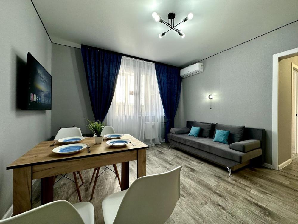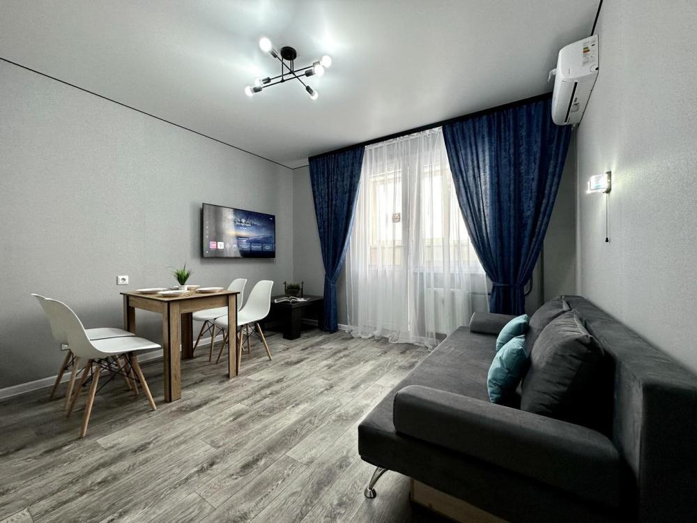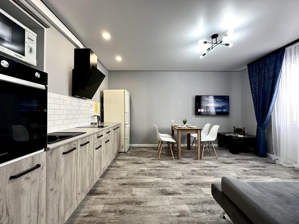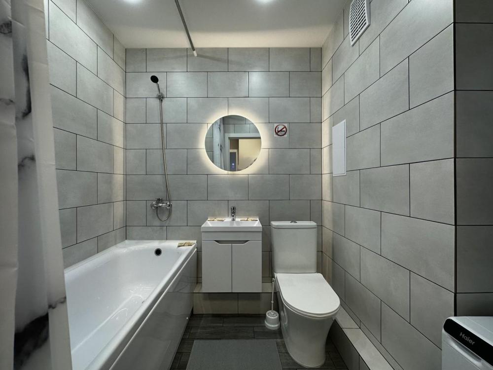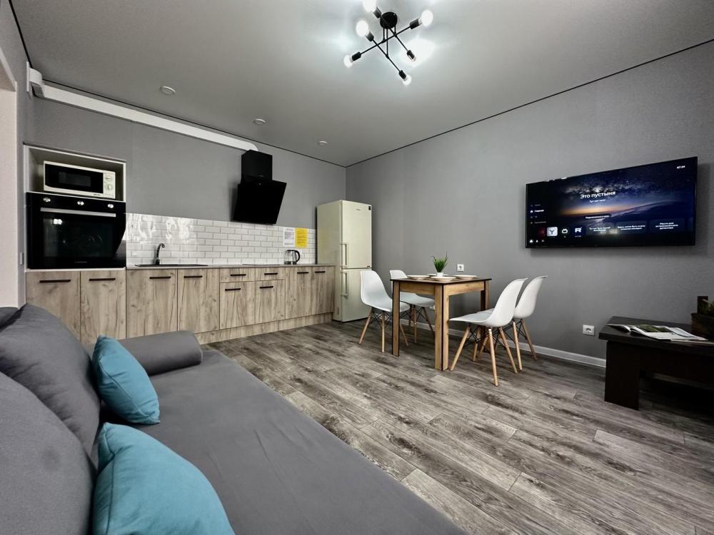 В КВАРТИРЕ ИМЕЮТСЯ: Кондиционер; ЖК-телевизор с подключенным кабельным ТВ; Комплект хлопкового постельного белья и полотенца; Бытовая техника (стиральная машинка, СВЧ-печь, холодильник, плита, чайник, утюг, фен); Средства для личной гигиены (шампунь, гель для душа, мыло); Посуда для приготовления пищи; Гладильная доска и сушилка. Цена зависит от количества проживающих, срока проживания, а также дня недели бронирования.