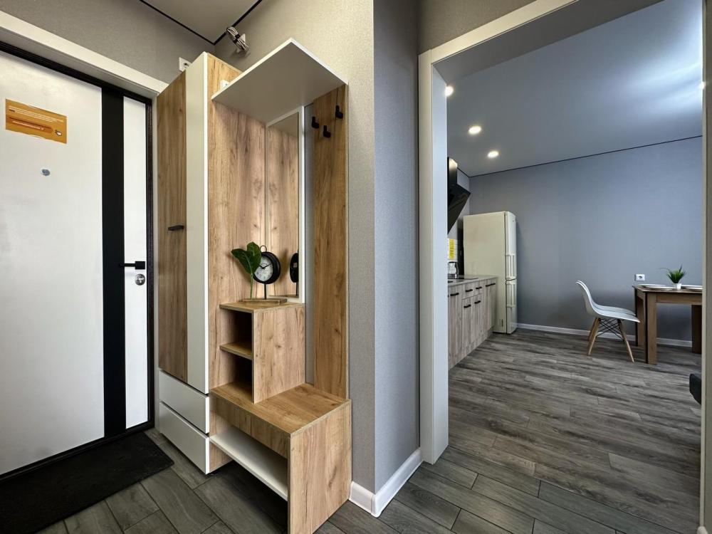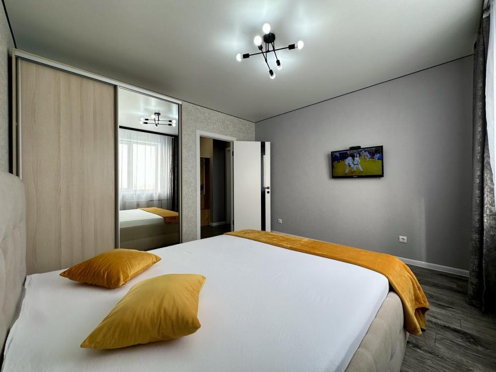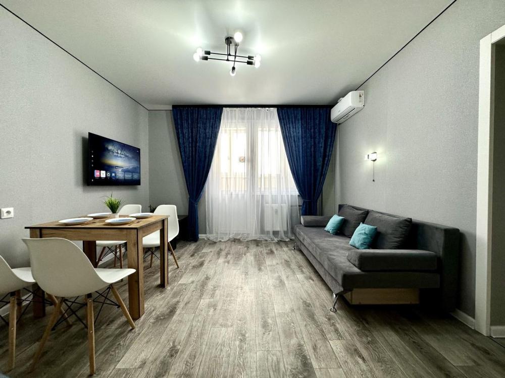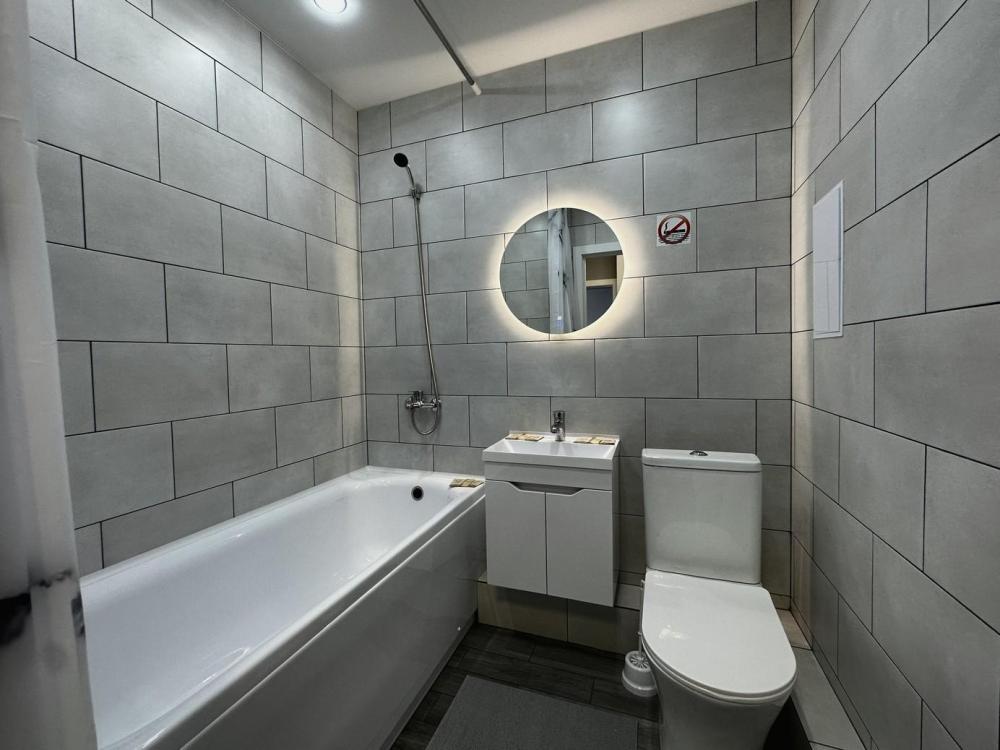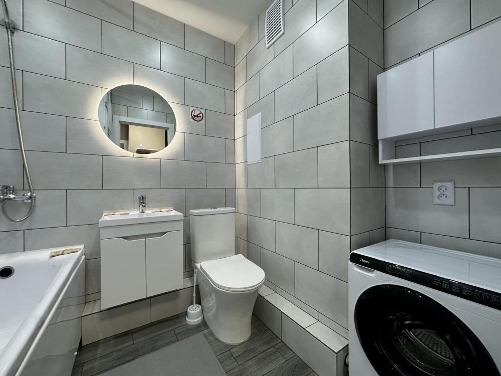 В КВАРТИРЕ ИМЕЮТСЯ: Кондиционер; ЖК-телевизор с подключенным кабельным ТВ; Комплект хлопкового постельного белья и полотенца; Бытовая техника (стиральная машинка, СВЧ-печь, холодильник, плита, чайник, утюг, фен); Средства для личной гигиены (шампунь, гель для душа, мыло); Посуда для приготовления пищи; Гладильная доска и сушилка. Цена зависит от количества проживающих, срока проживания, а также дня недели бронирования.