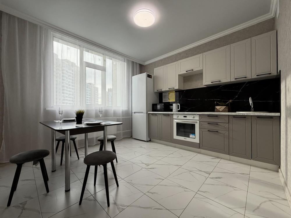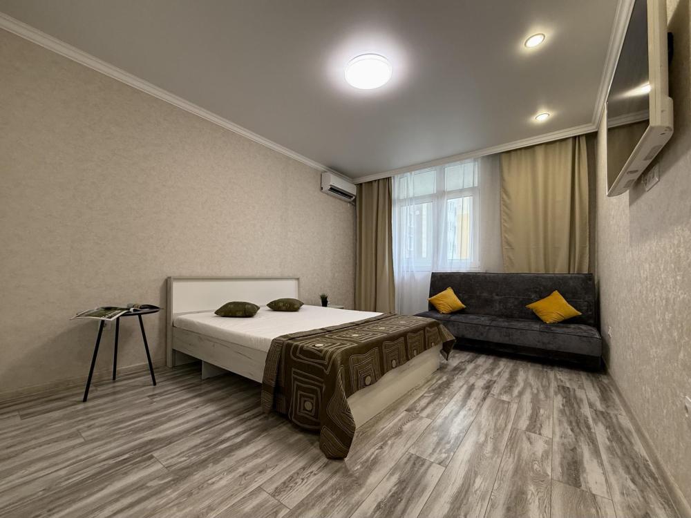 В КВАРТИРЕ ИМЕЮТСЯ: Кондиционер; ЖК-телевизор с подключенным кабельным ТВ; Комплект хлопкового постельного белья и полотенца; Бытовая техника (стиральная машинка, СВЧ-печь, холодильник, плита, чайник, утюг, фен); Средства для личной гигиены (шампунь, гель для душа, мыло); Посуда для приготовления пищи; Гладильная доска и сушилка. Цена зависит от количества проживающих, срока проживания, а также дня недели бронирования.