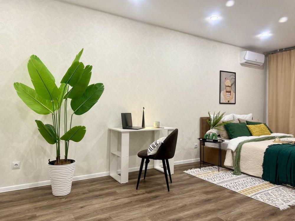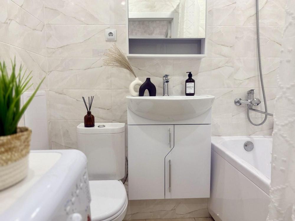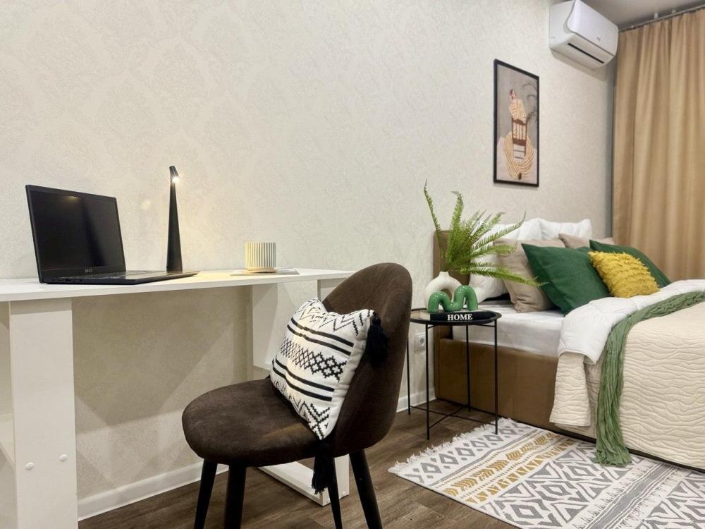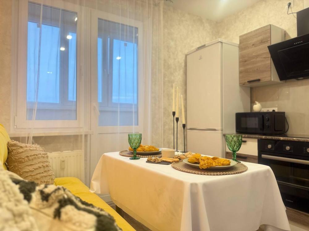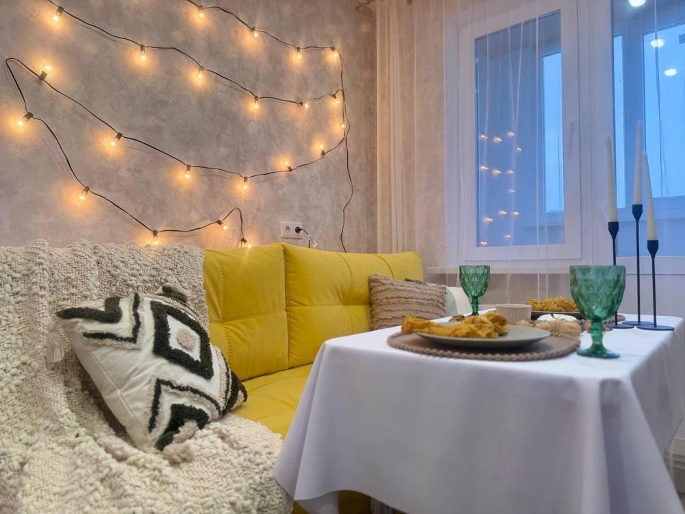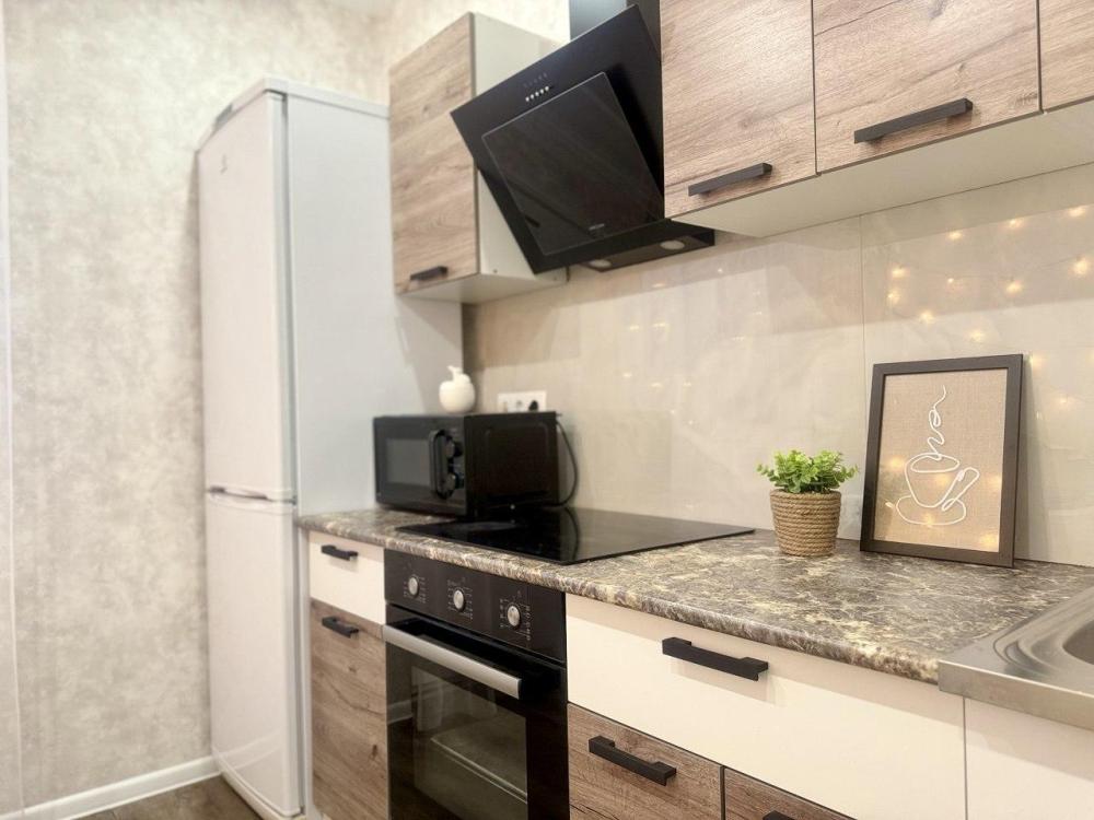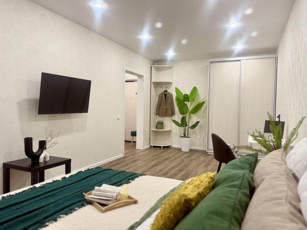 Однокомнатная квартира в которой имеется двуспальная кровать с ортопедическим матрасом, Wi-Fi, посуда, чай/кофе, средства гигиены (гель для душа, одноразовые зубные щётки), постельное бельё и полотенца для каждого гостя. В квартире с комфортом может разместиться до 4-х человек. Квартира оснащена: двуспальная кровать с ортопедическим матрасом 140/200, диван раскладной 120/200, кухня со всем необходимым, микроволновая печь, холодильник, стиральная машина, фен, утюг, гладильная доска, кондиционер.