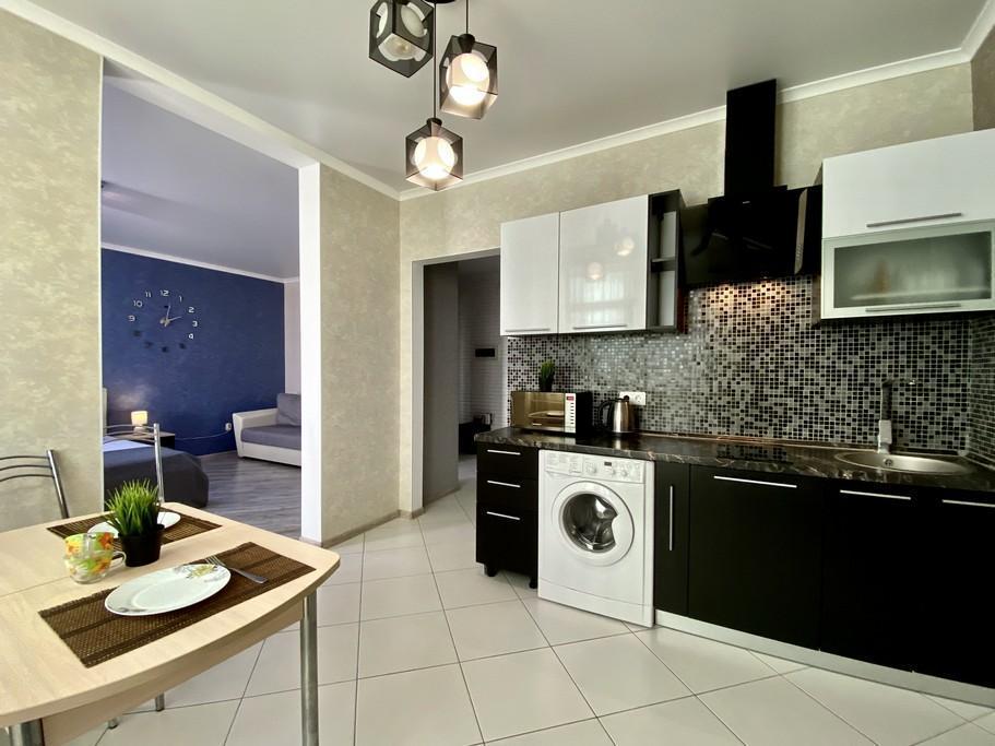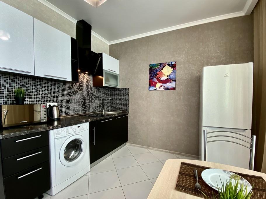 В КВАРТИРЕ ИМЕЮТСЯ: Кондиционер; ЖК-телевизор с подключенным кабельным ТВ; Комплект хлопкового постельного белья и полотенца; Бытовая техника (стиральная машинка, СВЧ-печь, холодильник, плита, чайник, утюг, фен); Средства для личной гигиены (шампунь, гель для душа, мыло); Посуда для приготовления пищи; Гладильная доска и сушилка. Цена зависит от количества проживающих, срока проживания, а также дня недели бронирования.