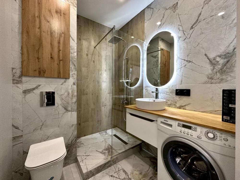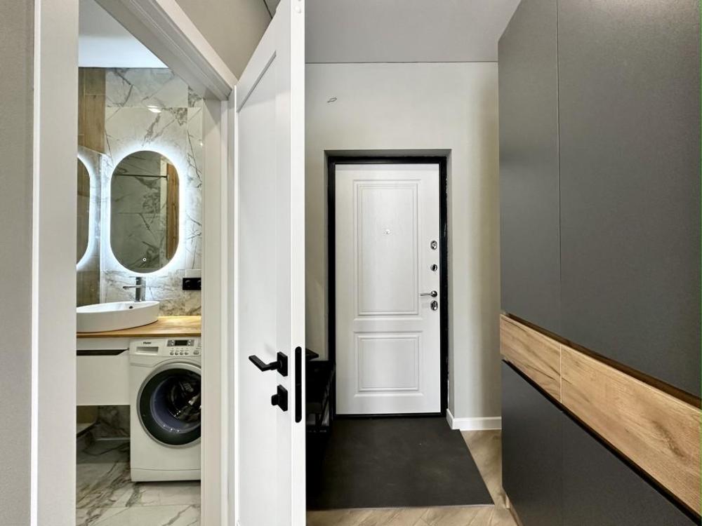 В КВАРТИРЕ ИМЕЮТСЯ: Кондиционер; ЖК-телевизор с подключенным кабельным ТВ; Комплект хлопкового постельного белья и полотенца; Бытовая техника (стиральная машинка, СВЧ-печь, холодильник, плита, чайник, утюг, фен); Средства для личной гигиены (шампунь, гель для душа, мыло); Посуда для приготовления пищи; Гладильная доска и сушилка. Цена зависит от количества проживающих, срока проживания, а также дня недели бронирования.