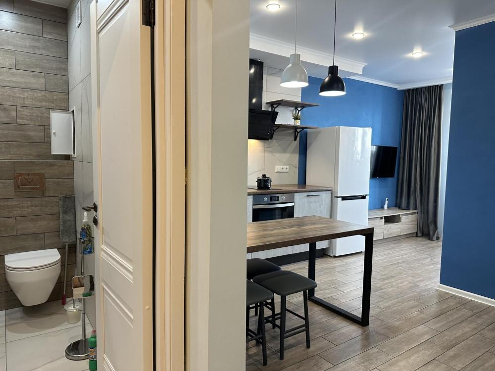 В КВАРТИРЕ ИМЕЮТСЯ: Кондиционер; ЖК-телевизор с подключенным кабельным ТВ; Комплект хлопкового постельного белья и полотенца; Бытовая техника (стиральная машинка, СВЧ-печь, холодильник, плита, чайник, утюг, фен); Средства для личной гигиены (шампунь, гель для душа, мыло); Посуда для приготовления пищи; Гладильная доска и сушилка. Цена зависит от количества проживающих, срока проживания, а также дня недели бронирования.