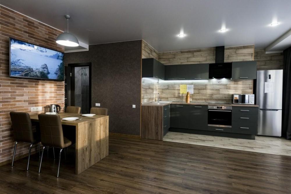 В КВАРТИРЕ ИМЕЮТСЯ: Кондиционер; ЖК-телевизор с подключенным кабельным ТВ; Комплект хлопкового постельного белья и полотенца; Бытовая техника (стиральная машинка, СВЧ-печь, холодильник, плита, чайник, утюг, фен); Средства для личной гигиены (шампунь, гель для душа, мыло); Посуда для приготовления пищи; Гладильная доска и сушилка. Цена зависит от количества проживающих, срока проживания, а также дня недели бронирования.