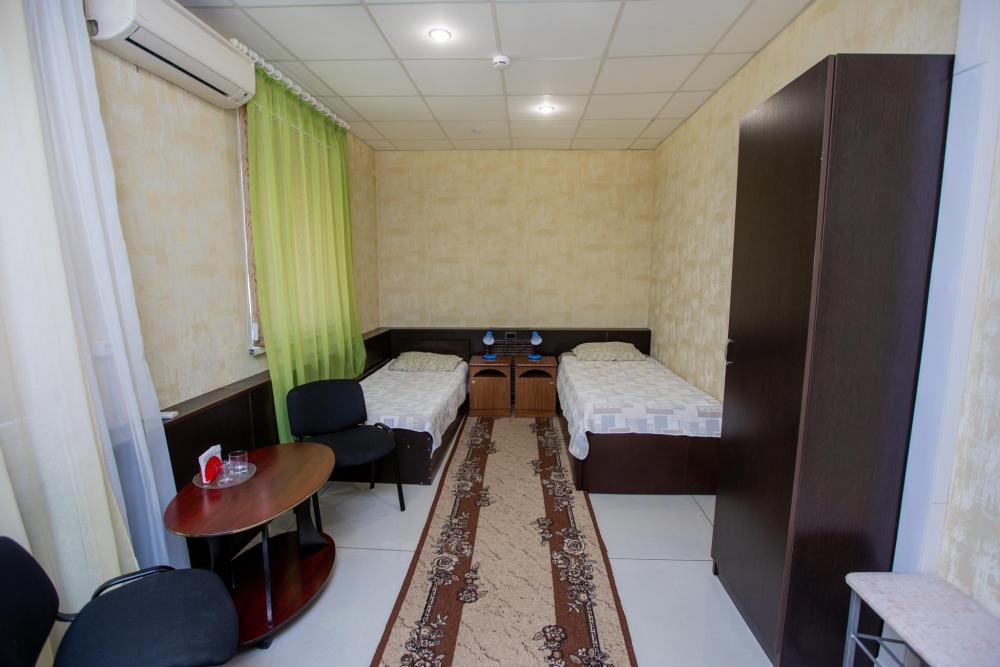 Стандартный номер с двумя раздельными кроватями, тв, чайником, кондиционером, холодильником.