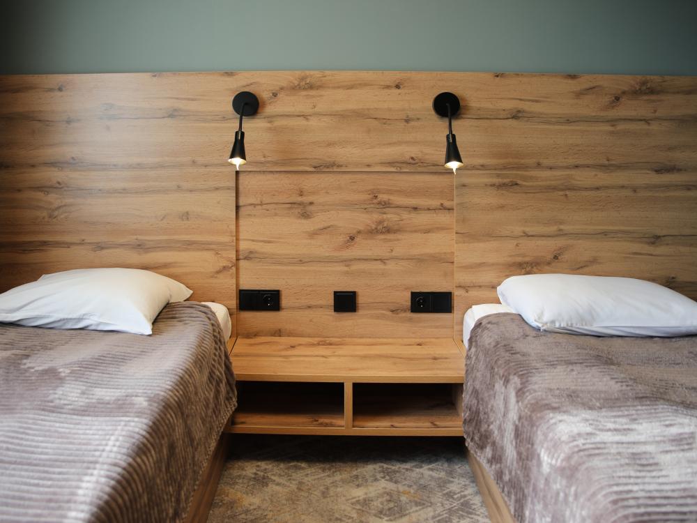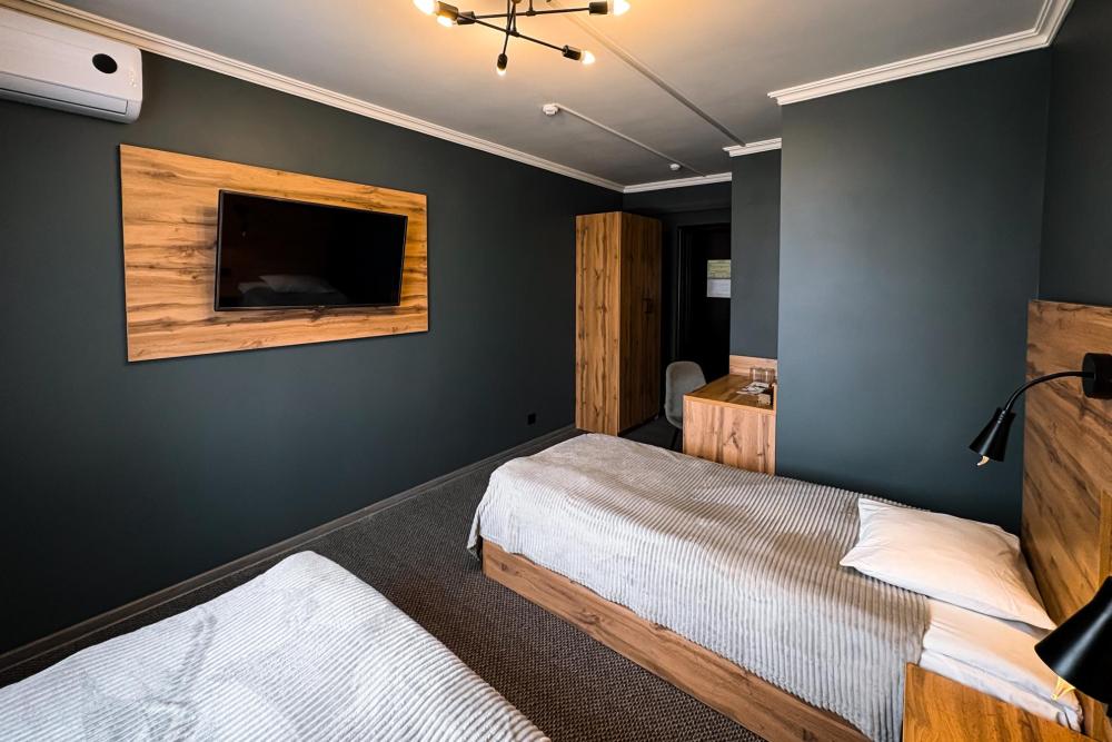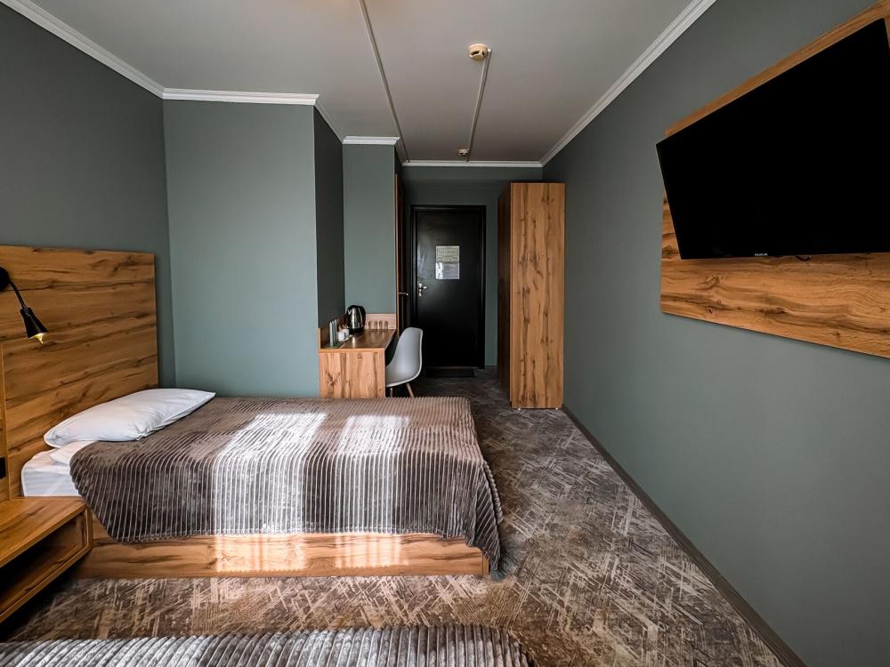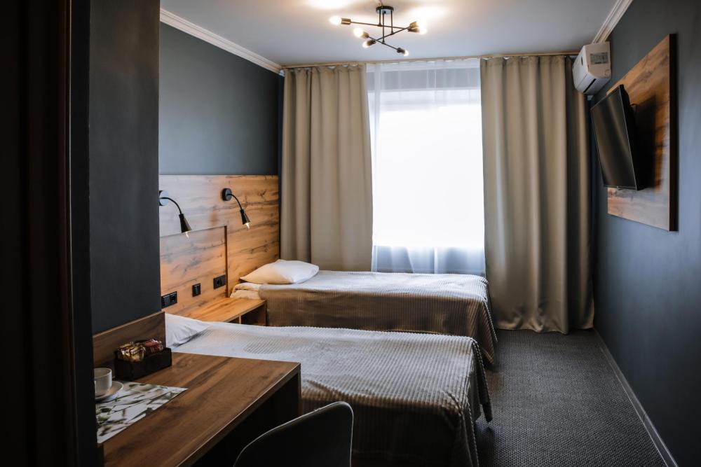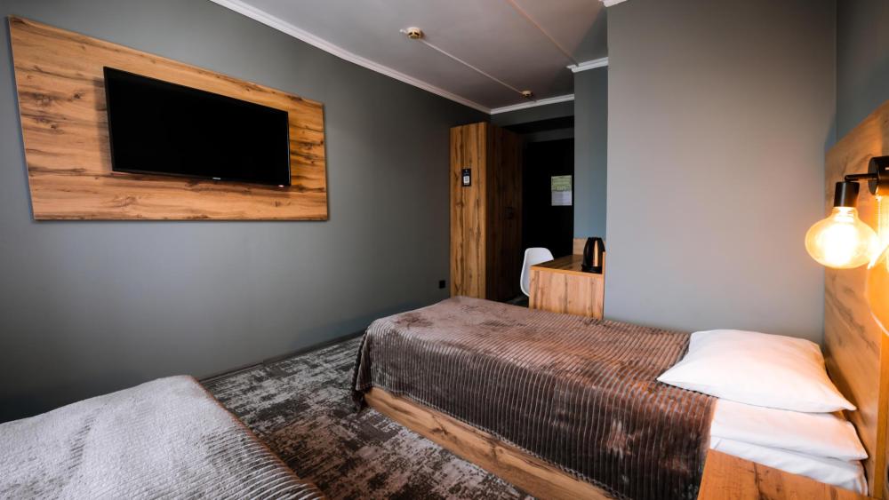 В номере: • Две односпальные кровати • Душевая кабина • Гигиенические принадлежности (шампунь, гель для душа, мыло, полотенца) • Телевизор • Шкаф • Холодильник • Электрический чайник • Бесплатный Wi-Fi