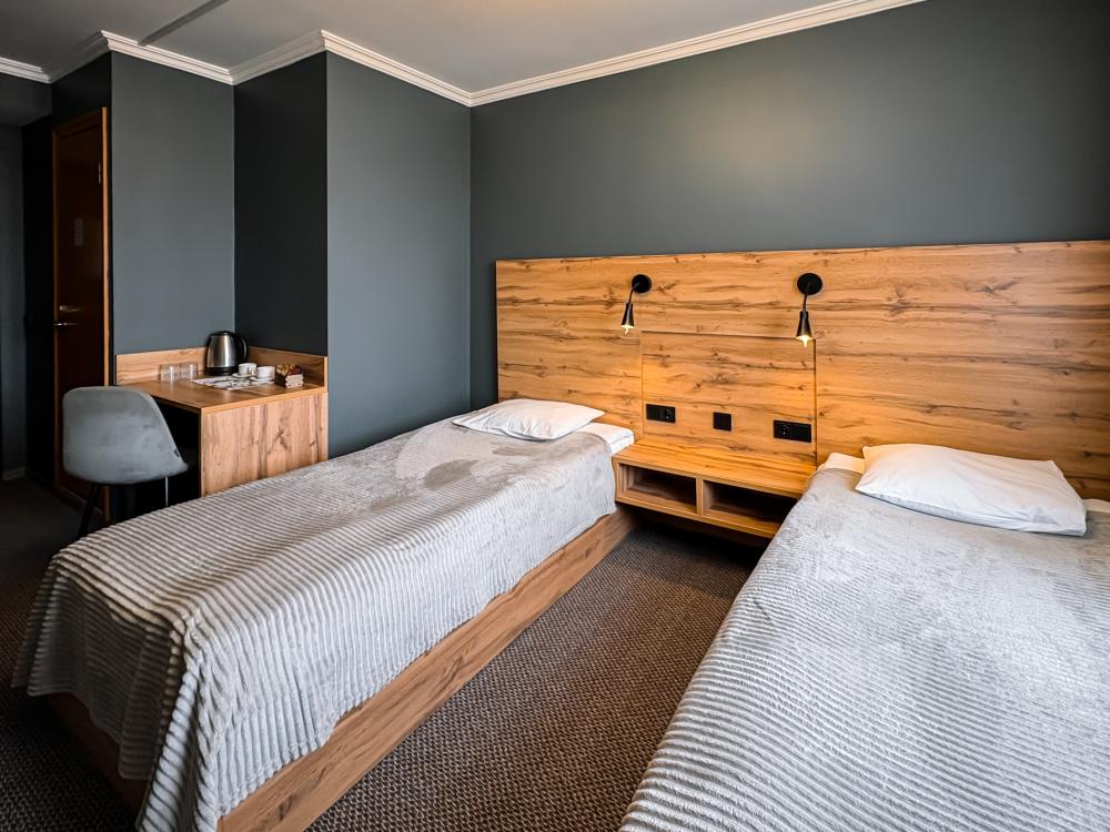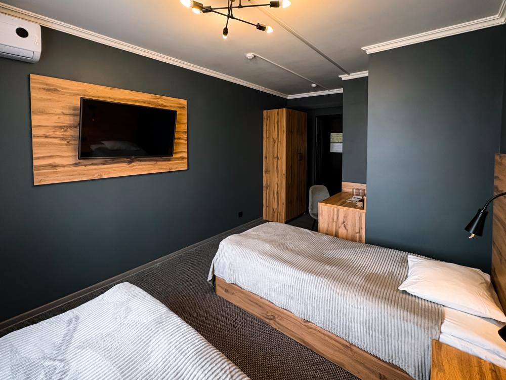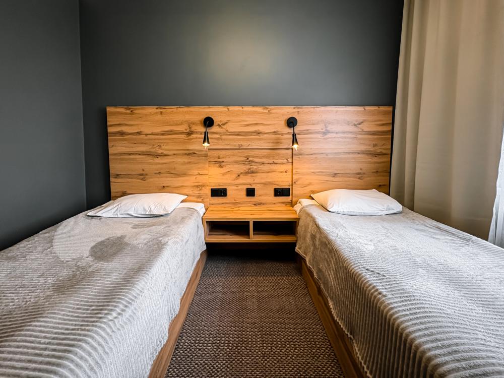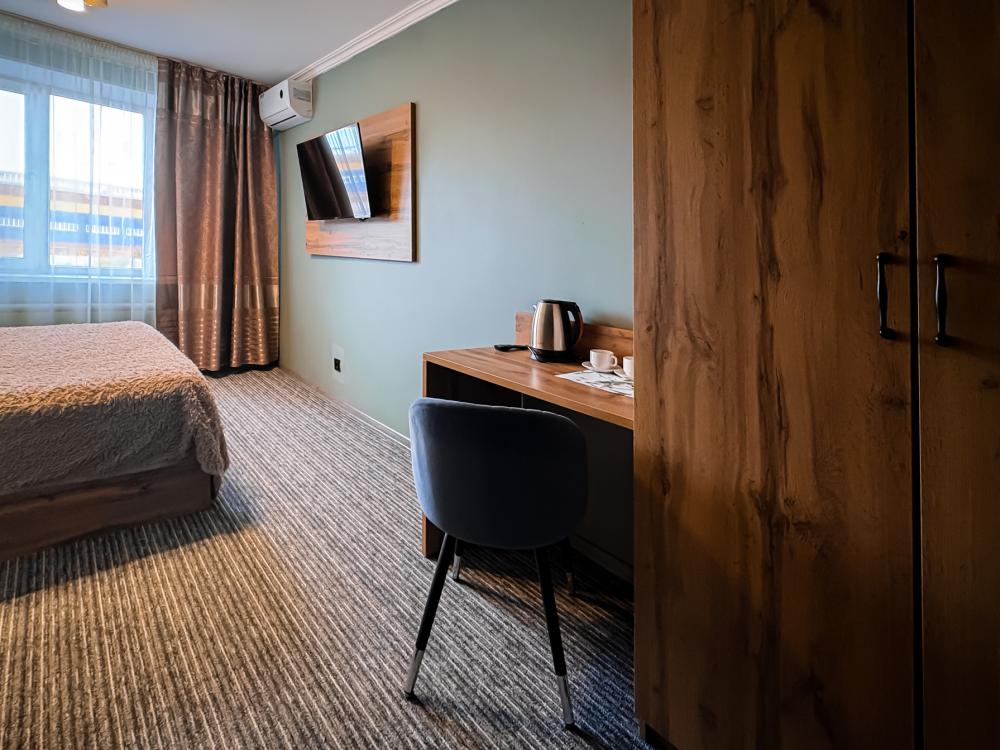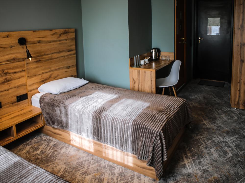 В номере: • Две односпальные кровати • Душевая кабина • Гигиенические принадлежности (шампунь, гель для душа, мыло, полотенца) • Телевизор • Шкаф • Холодильник • Электрический чайник • Бесплатный Wi-Fi