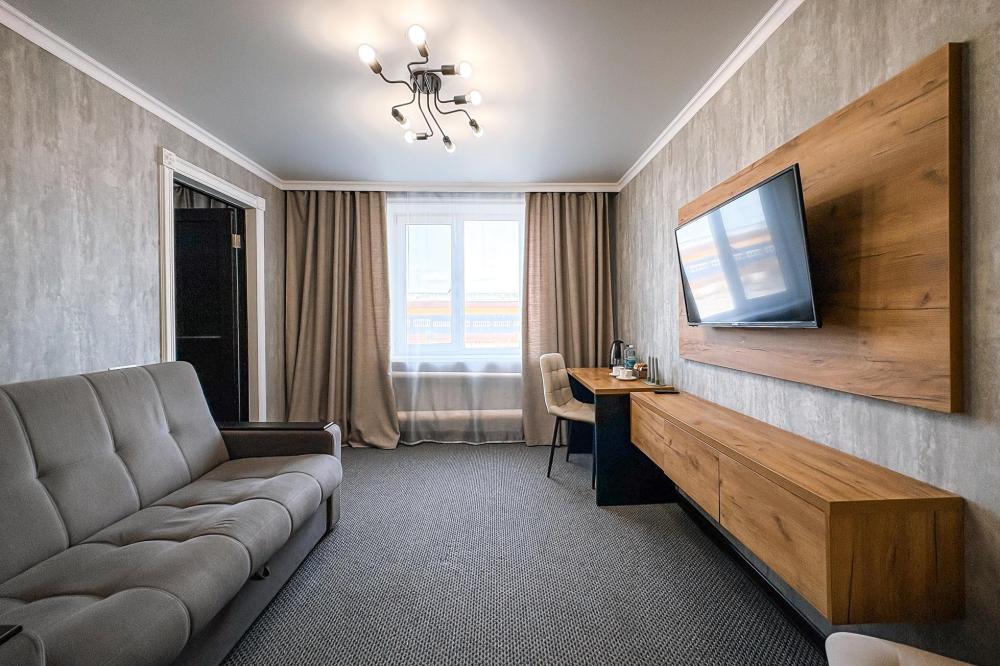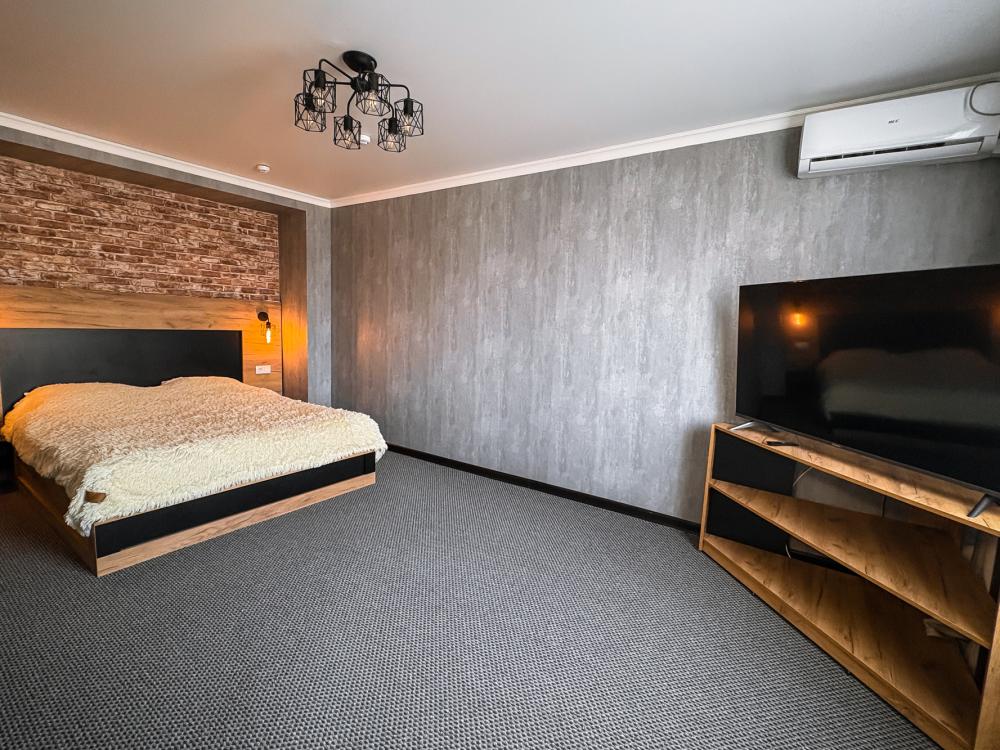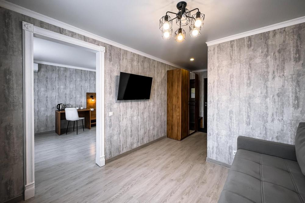 • Две комнаты (36 кв. м) • Двуспальная кровать • Диван • Два телевизора • Душевая кабина • Гигиенические принадлежности (шампунь, гель для душа, мыло, полотенца) • Шкаф • Холодильник • Электрический чайник • Бесплатный Wi-Fi
