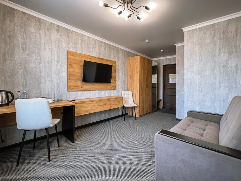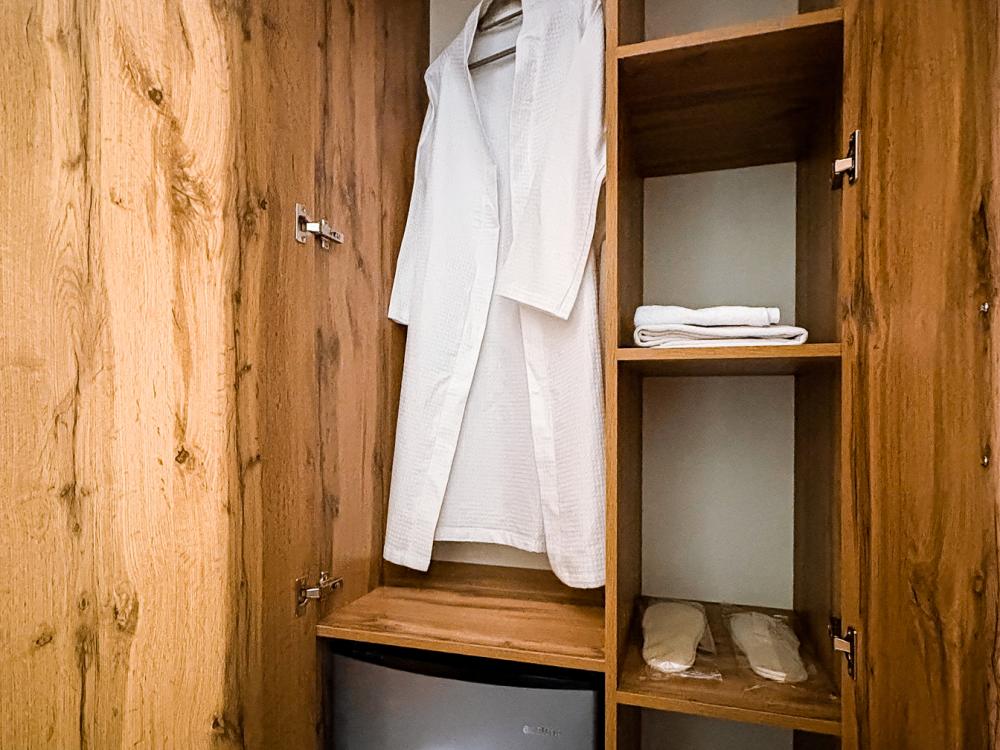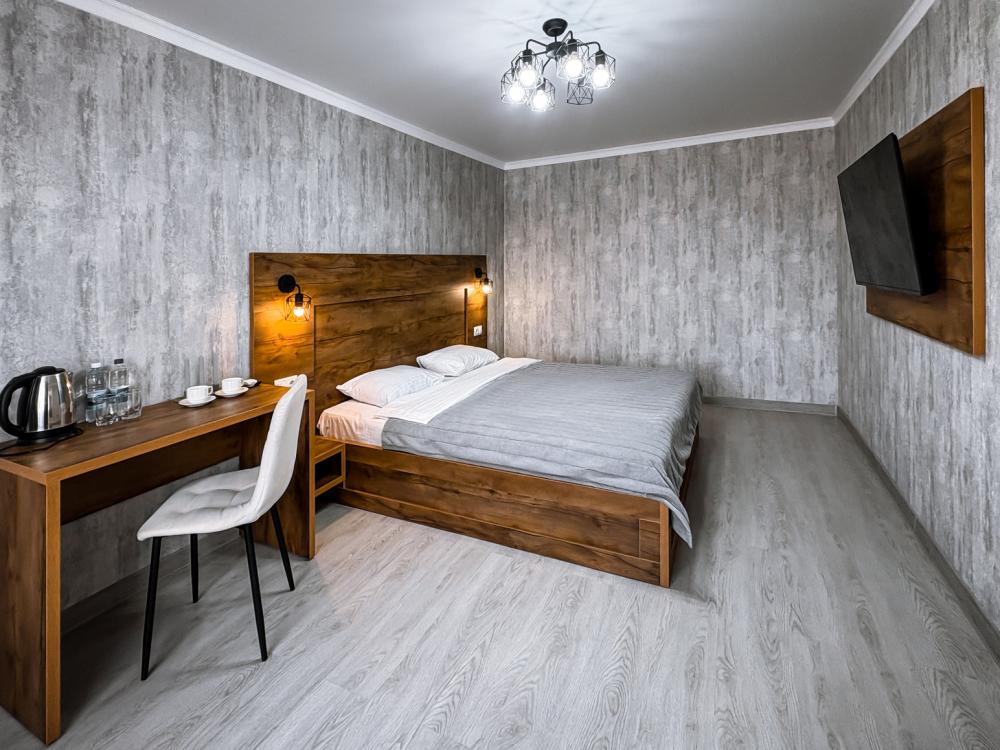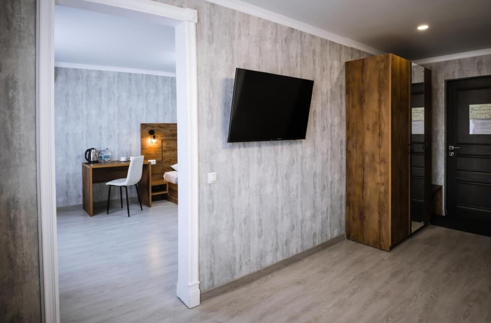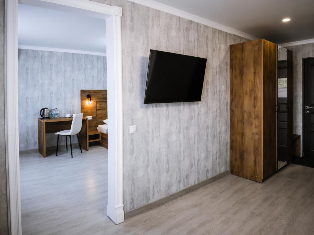 В номере : • Двуспальная кровать • Душевая кабина • Гигиенические принадлежности (шампунь, гель для душа, мыло, полотенца) • Телевизор • Шкаф • Холодильник • Электрический чайник • Бесплатный Wi-Fi