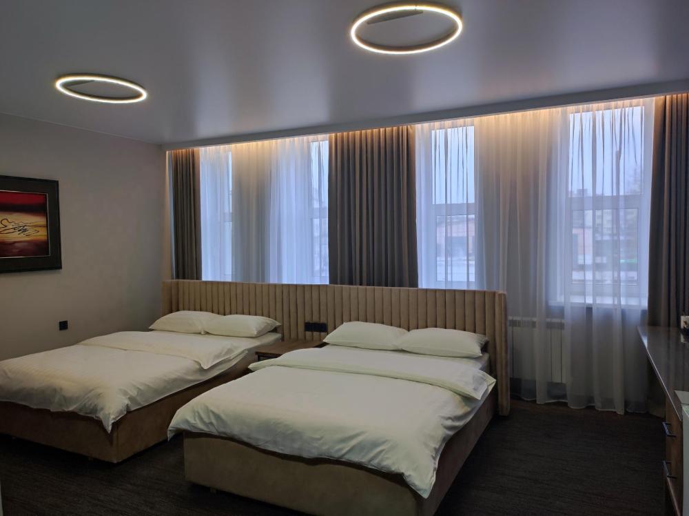 Номер "Президентский премиум" общей площадью 68 кв.м. состоит из двух комнат, которые являют собой лучшие апартаменты Оренбурга. В номере имеется спальня с евро-кроватью, гостиная с кожаными диванами, рабочий стол, бесплатный доступ к интернету. Ванная комната оснащена душевой кабиной-джакузи. Круглосуточное обслуживание в номере, халат и тапочки, косметические принадлежности, Wi-Fi, завтрак, 2 телевизора, фен, кондиционер, 2 телефона, холодильник, рабочее место, услуги прачечной.