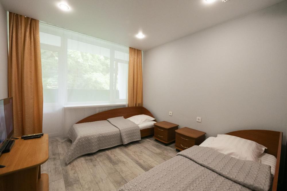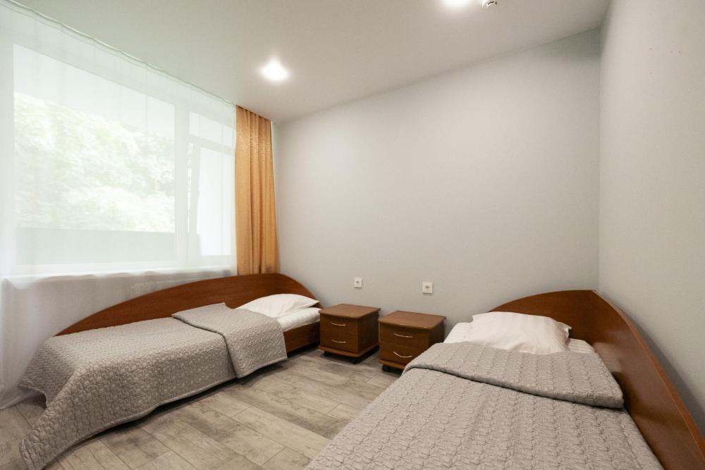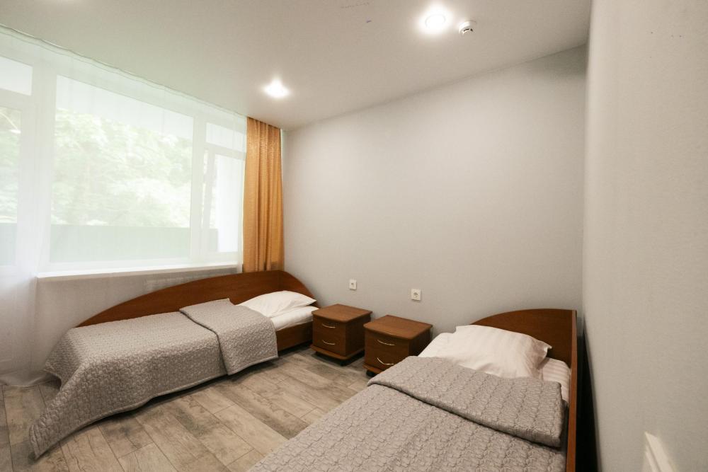 Двухместный однокомнатный номер, состоящий из одной жилой комнаты, с размещением двух человек на двух отдельно стоящих кроватях, с полным санузлом ( душ, умывальник, унитаз).