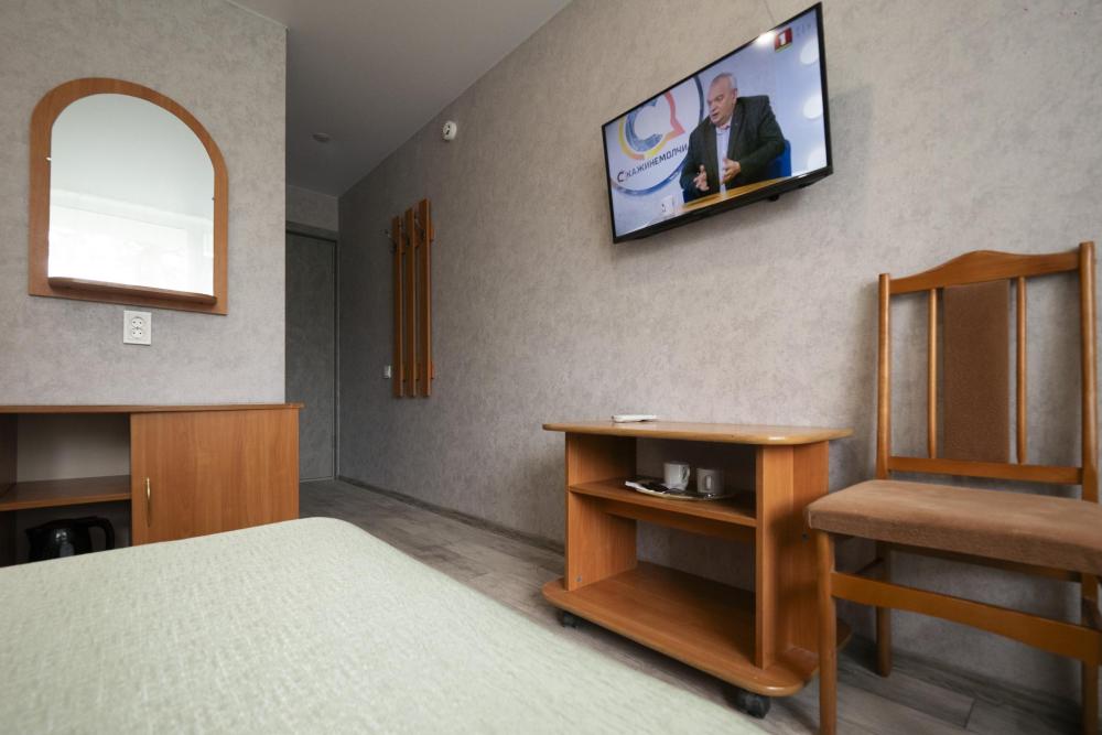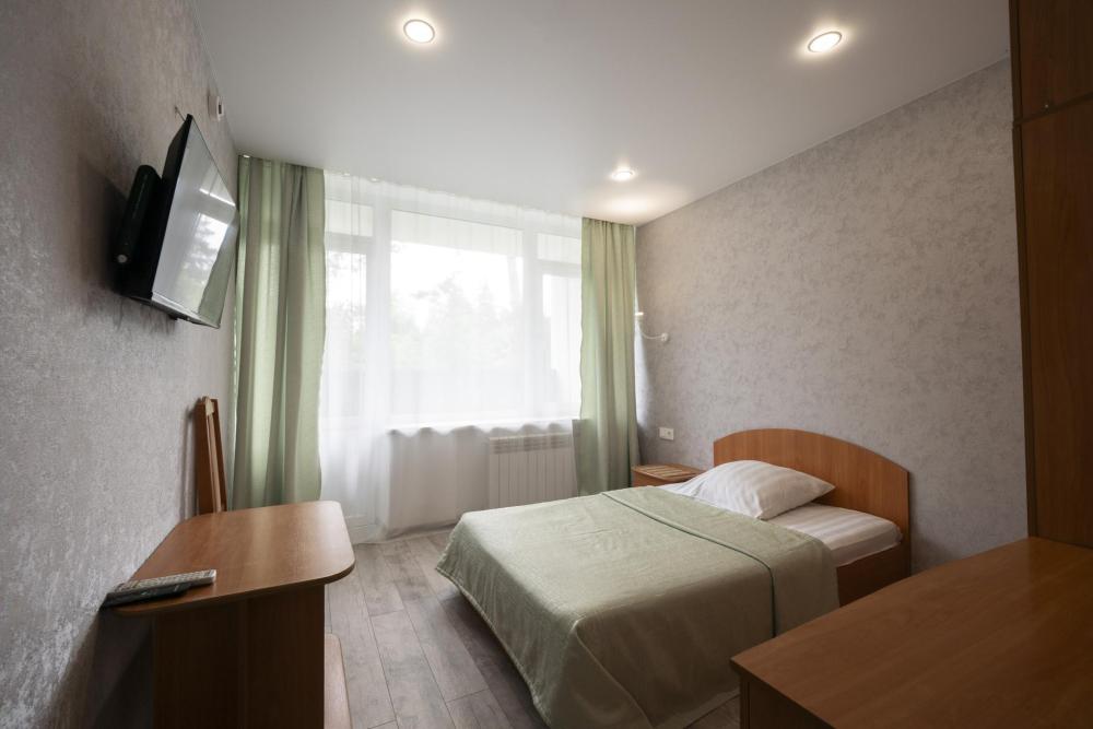Номер "одноместный стандарт". Одноместный однокомнатный номер, состоящий из одной жилой комнаты, со спальным местом для одного человека, с полным санузлом(душ, умывальник, унитаз), телевизор, холодильник, чайник.