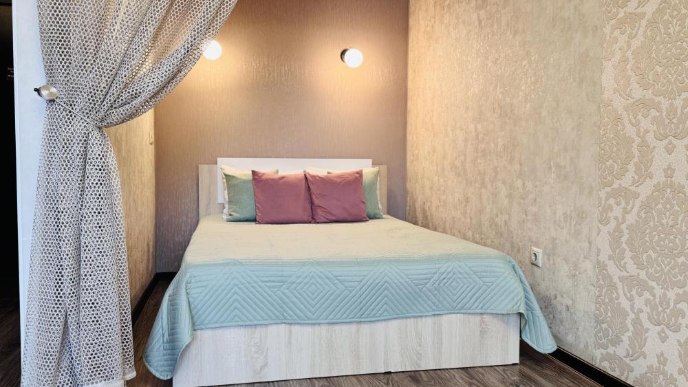 Студия с вместимостью до 2 гостей. В квартире есть все, что нужно для комфортного проживания: двуспальная кровать, кондиционер, плита, стиральная машина, тв, wi-fi, чайник, посуда, холодильник, утюг, микроволновка, постельные принадлежности. Спальный район города расположен...